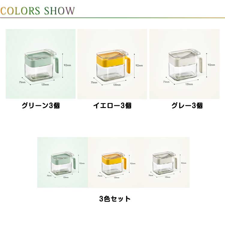 調味料ポット 砂糖入れ 固まらない 塩 キッチン用品 食器 調理器具 豊富 グリーン3個 イエロー3個 グレー3個 3色セット