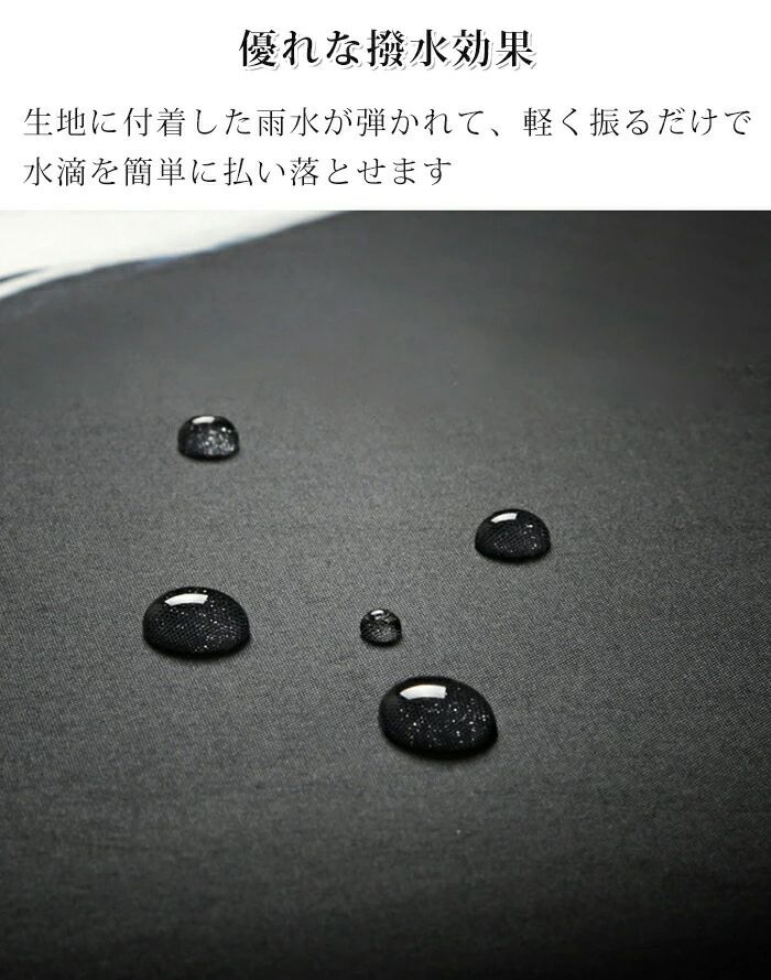 優れな撥水効果、生地に付着した雨水が弾かれて、軽く振るだけで水滴を簡単に払い落とせます、公共の場所でも周囲に水滴を飛ばして迷惑をかける心配がありません