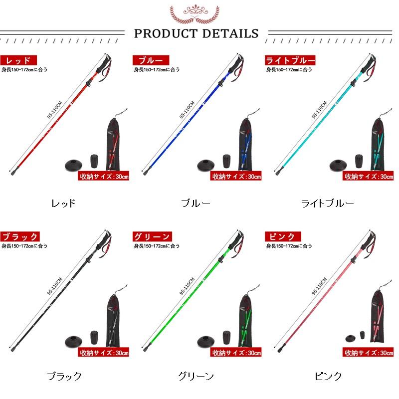 登山ストック トレッキングステッキ 超 スポーツ アウトドア 人気 レッド ブルー ライトブルー ブラック グリーン ピンク
