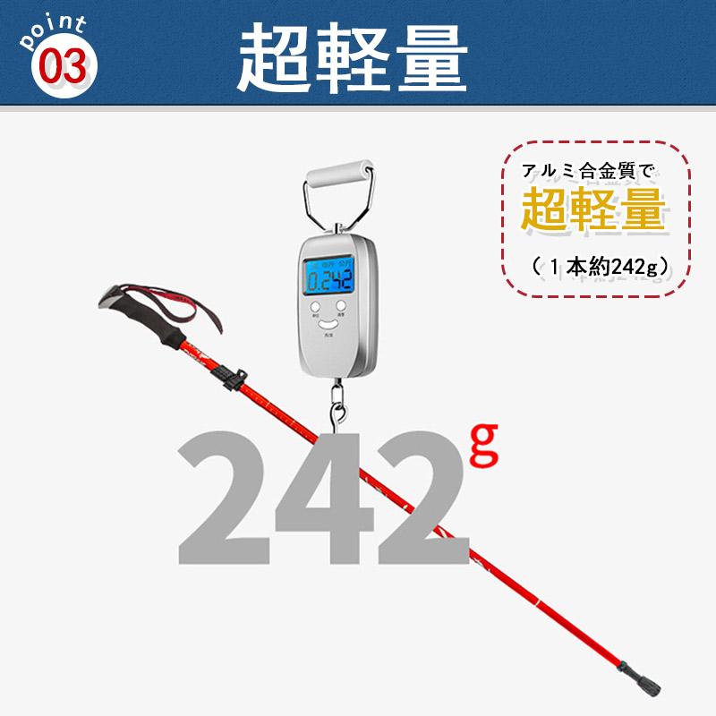 登山ストック トレッキングステッキ 超軽量アルミ製 高強度 折り畳み アウトドア ハイキング 収納ケース付き
