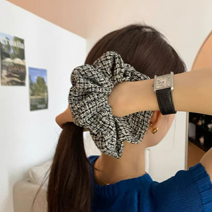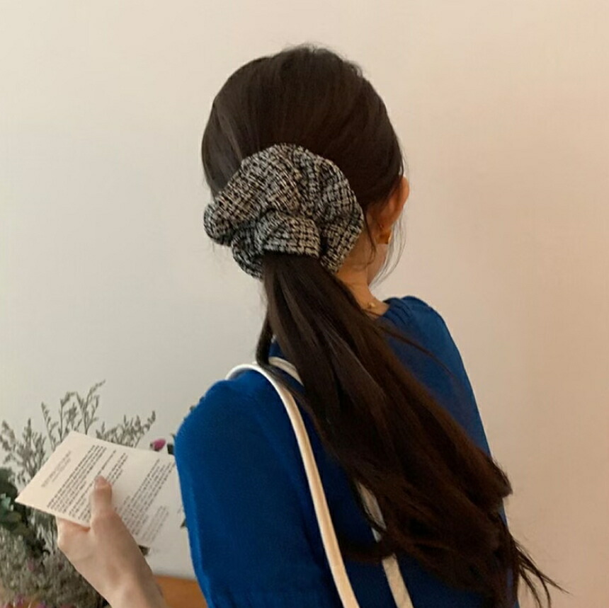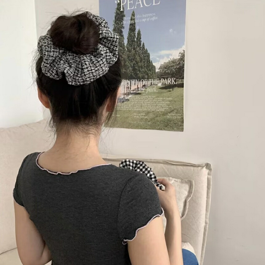 チェックシュシュ ヘアゴム ビッグシュシュ カラーツイードシュシュ レディースヘアアクセサリー おしゃれ 大人可愛い
