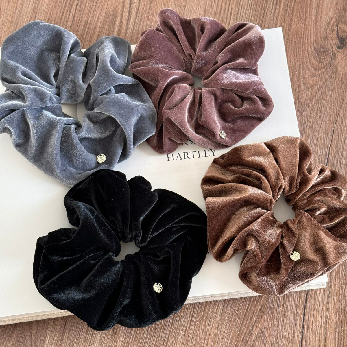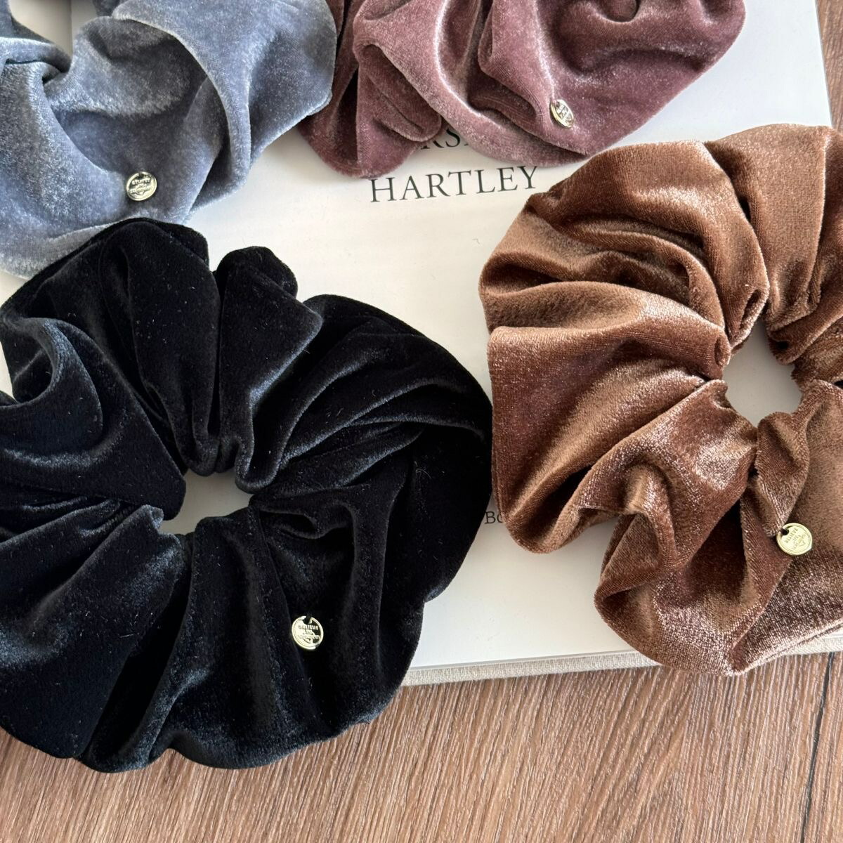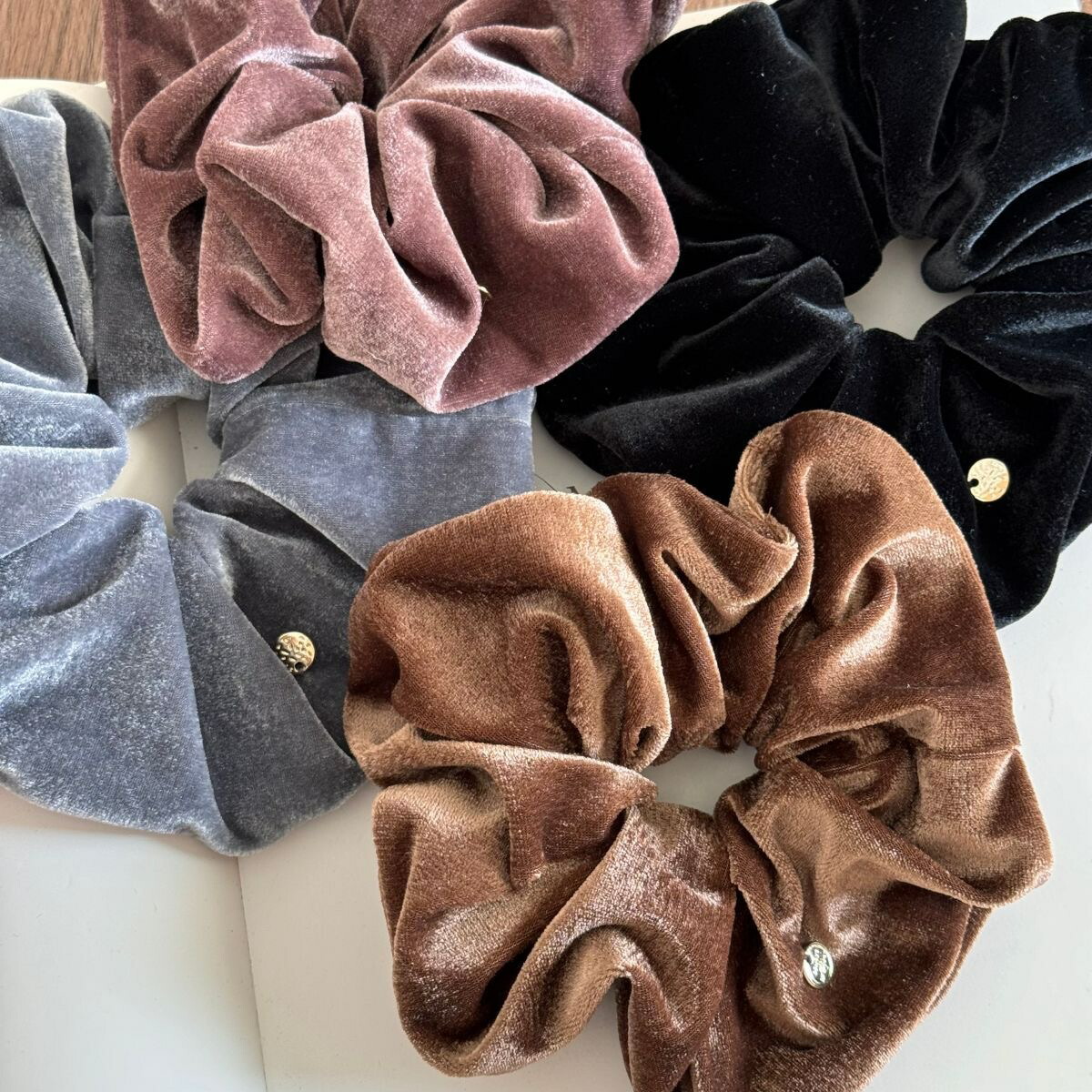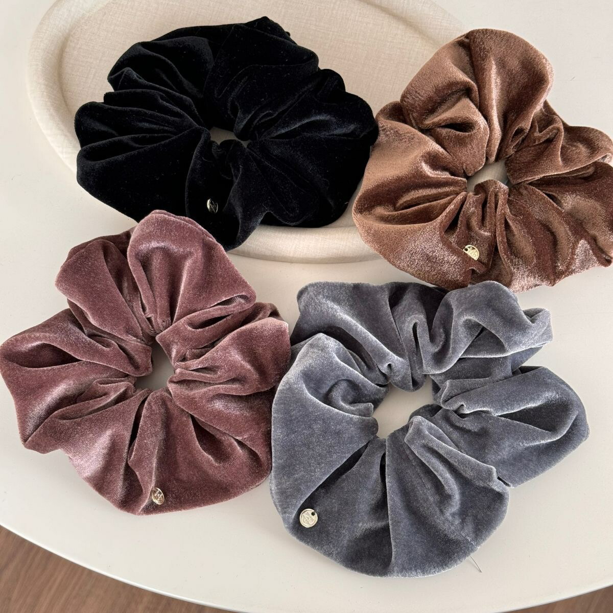 ベロアボリュームシュシュ ベルベットシ レディースジュエリー アクセサリー ヘアアクセサリー シュシュ 豊富 あずき色 ブラウン ブラック グレー