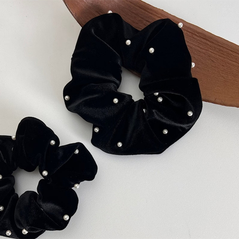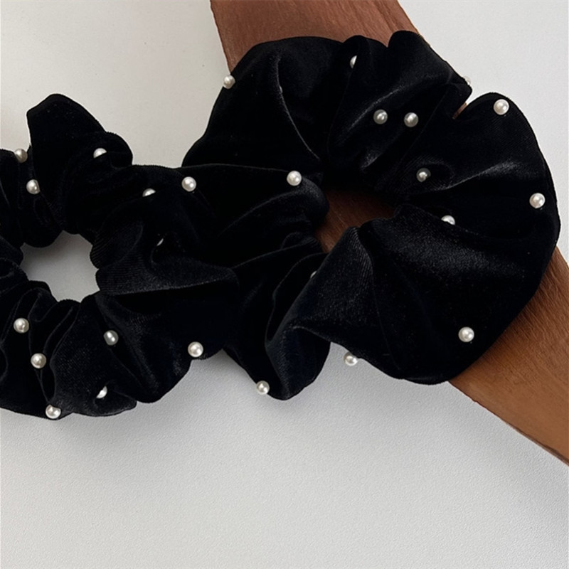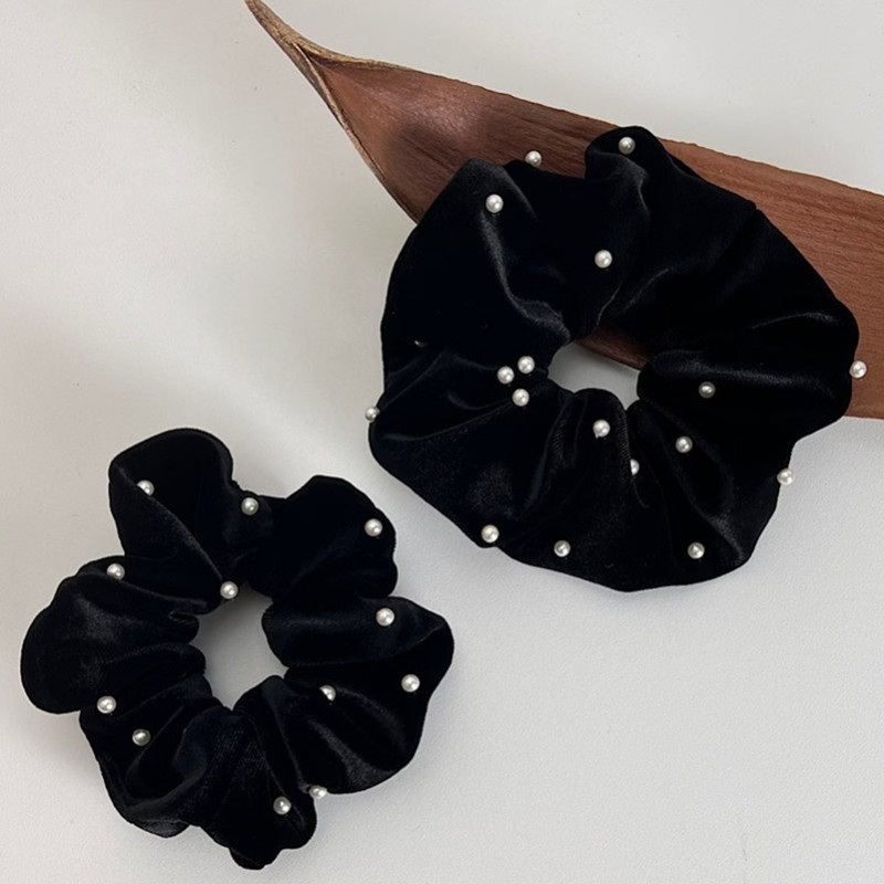 ヘアゴム ベロアシュシュ パール付きベ レディースジュエリー アクセサリー ヘアアクセサリー シュシュ 豊富 (大)直径約14cm (小)直径約12cm