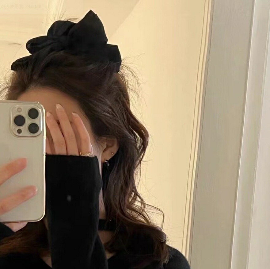 サテンリボンシュシュ ビッグシュシュ ヘアゴム シンプル おしゃれ ブラック レディースヘアアクセサリー 可愛い