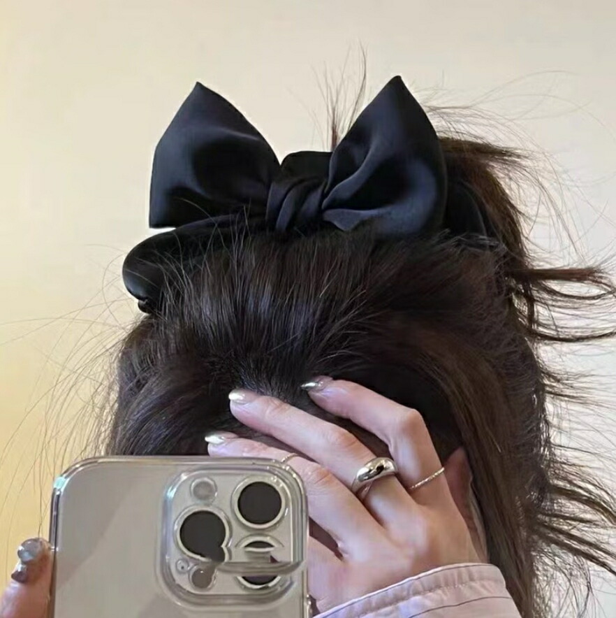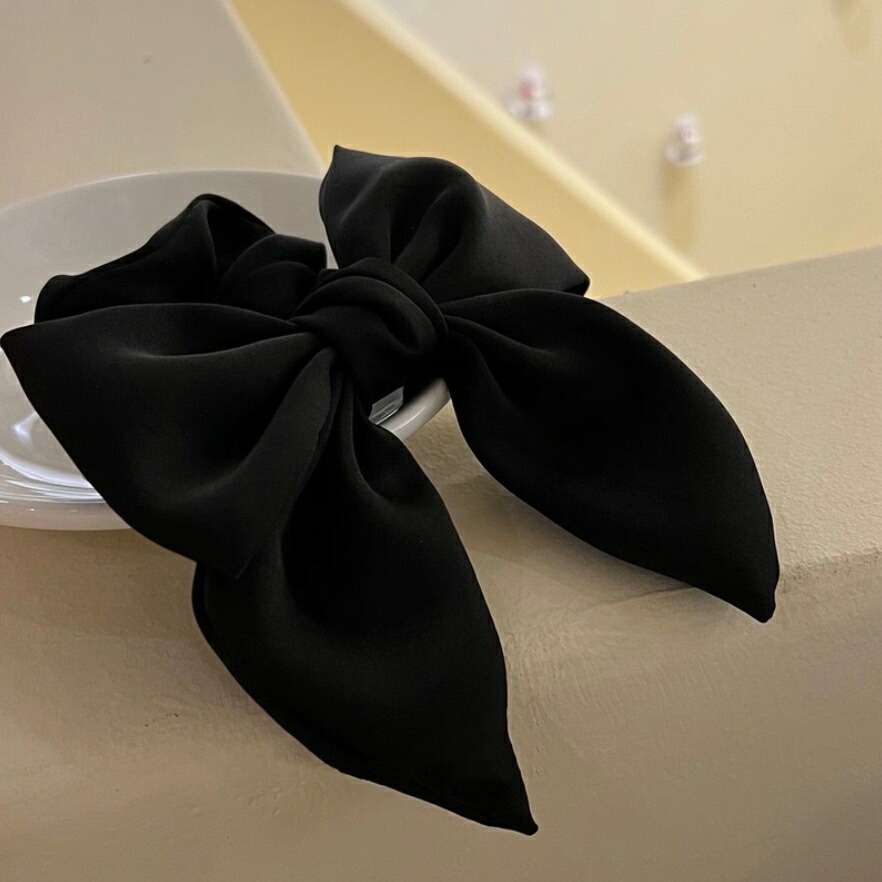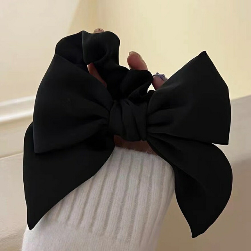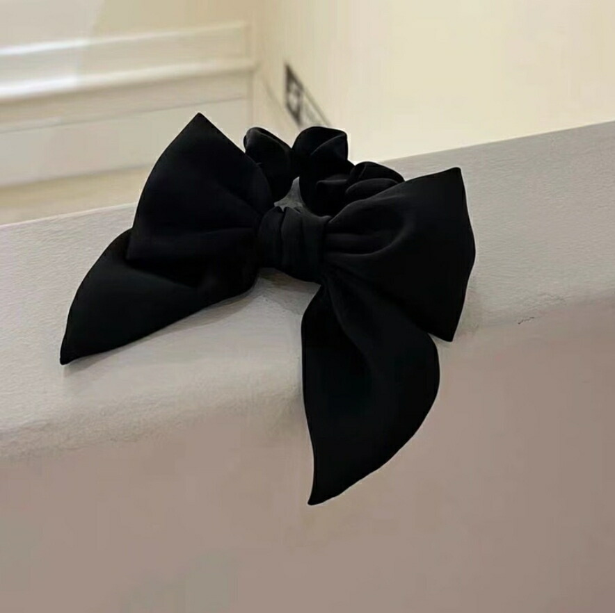 サテンリボンシュシュ ビッグシュシュ ヘアゴム シンプル おしゃれ 可愛い ブラック レディースヘアアクセサリー