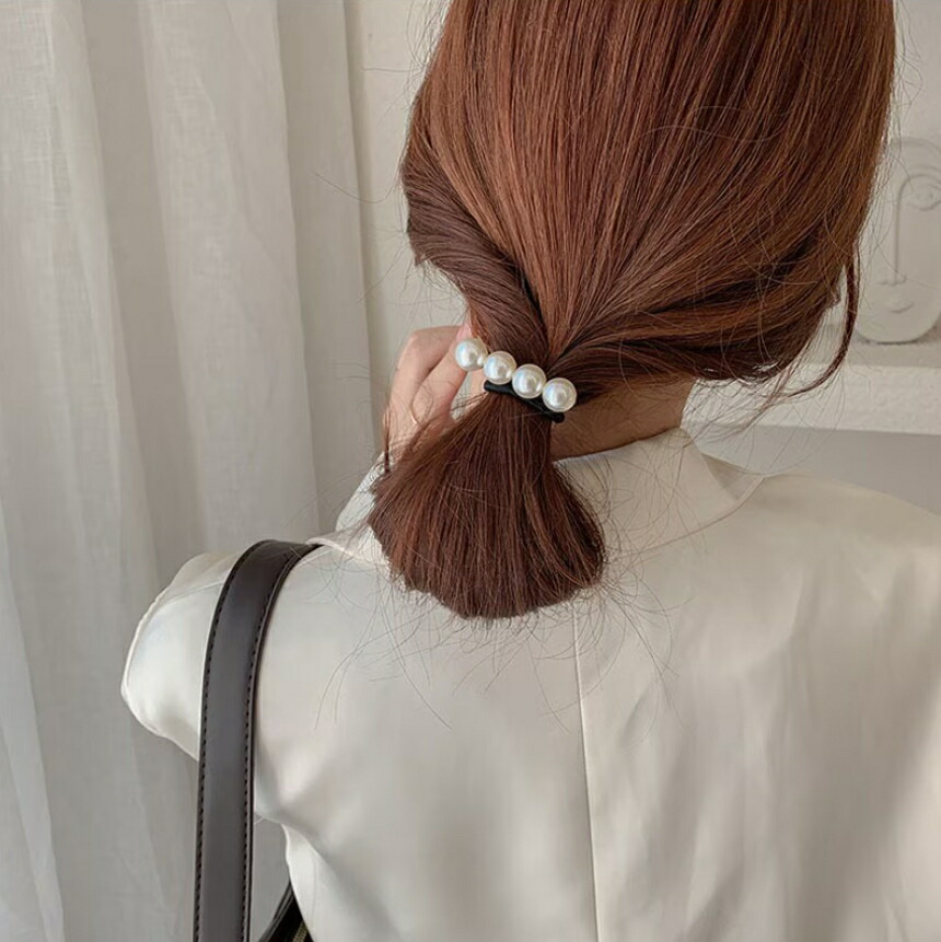 パールヘアゴム 4連パールヘアゴム ヘアゴム1点 おしゃれ シンプル オフィス レディースヘアアクセサリー 大人可愛い