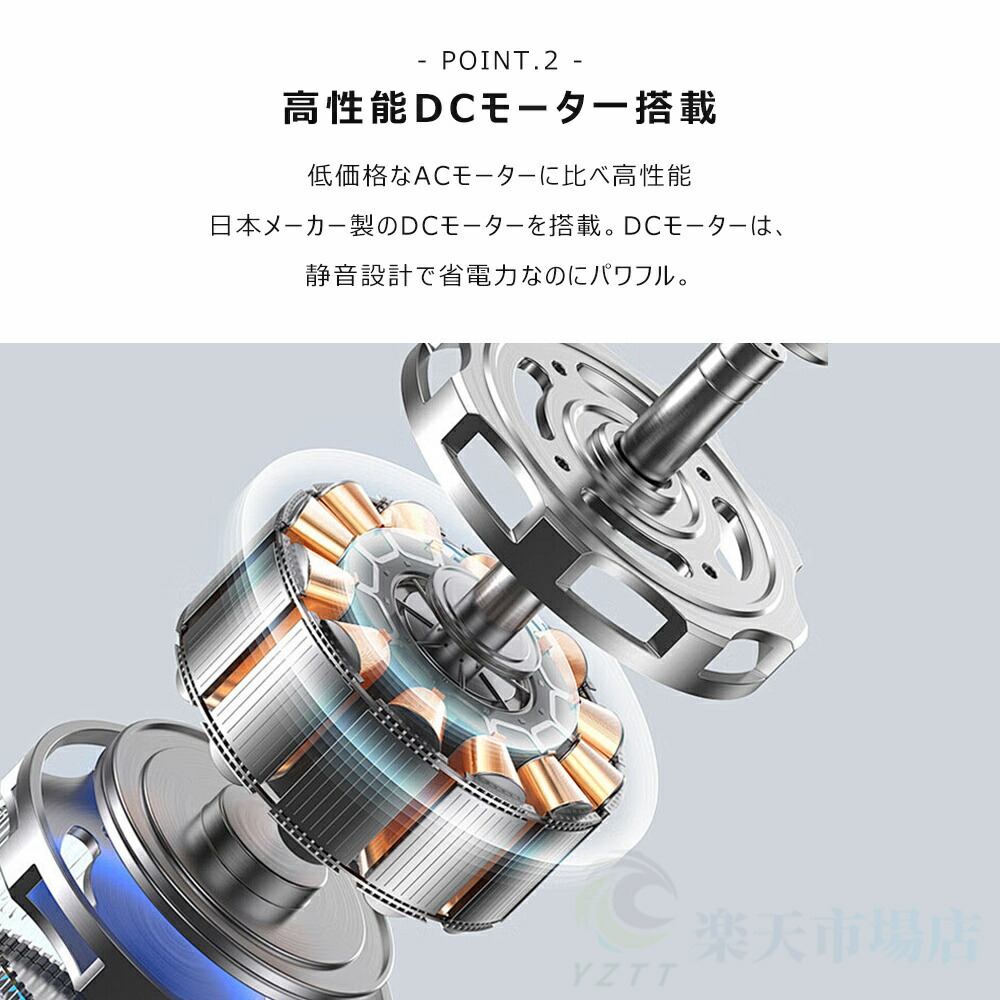 DCモーターは微量な電流までコントロールに優れ、電力も無駄なく活用して運転が可能。静音、省エネ、風量調節6段階を実現しています。