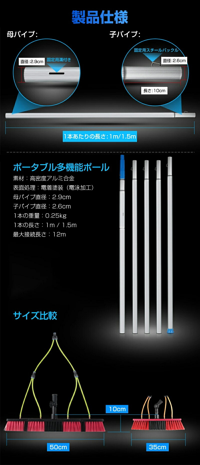外壁掃除ブラシ 高所掃除 給水伸縮ブラ 掃除用品 スポンジ たわし ブラシ 柄付ブラシ 柄付たわし 早い者勝ち 35cm 55cm 3メートル 4メートル 5メートル 6メートル 7メートル 8メートル 9メートル 10メートル 11メートル 12メートル