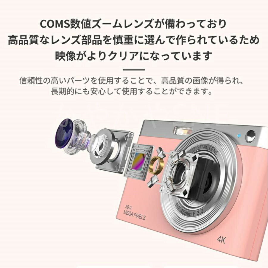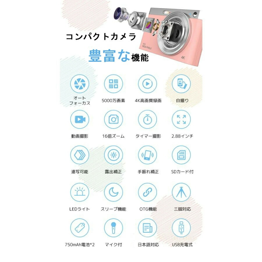 デジタルカメラ 5000万画素 ビデオ ピンク ブラック ホワイト ブルー