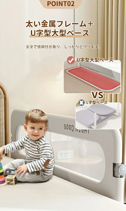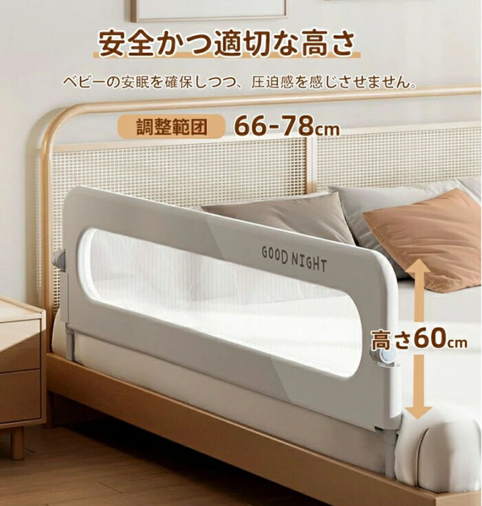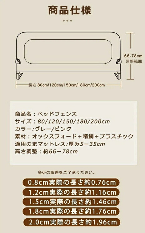 子供用 ベッドフェンス ベッドガード グレー無地 グレー ピンク ベージュ 80cm 120cm 150cm 180cm 200cm