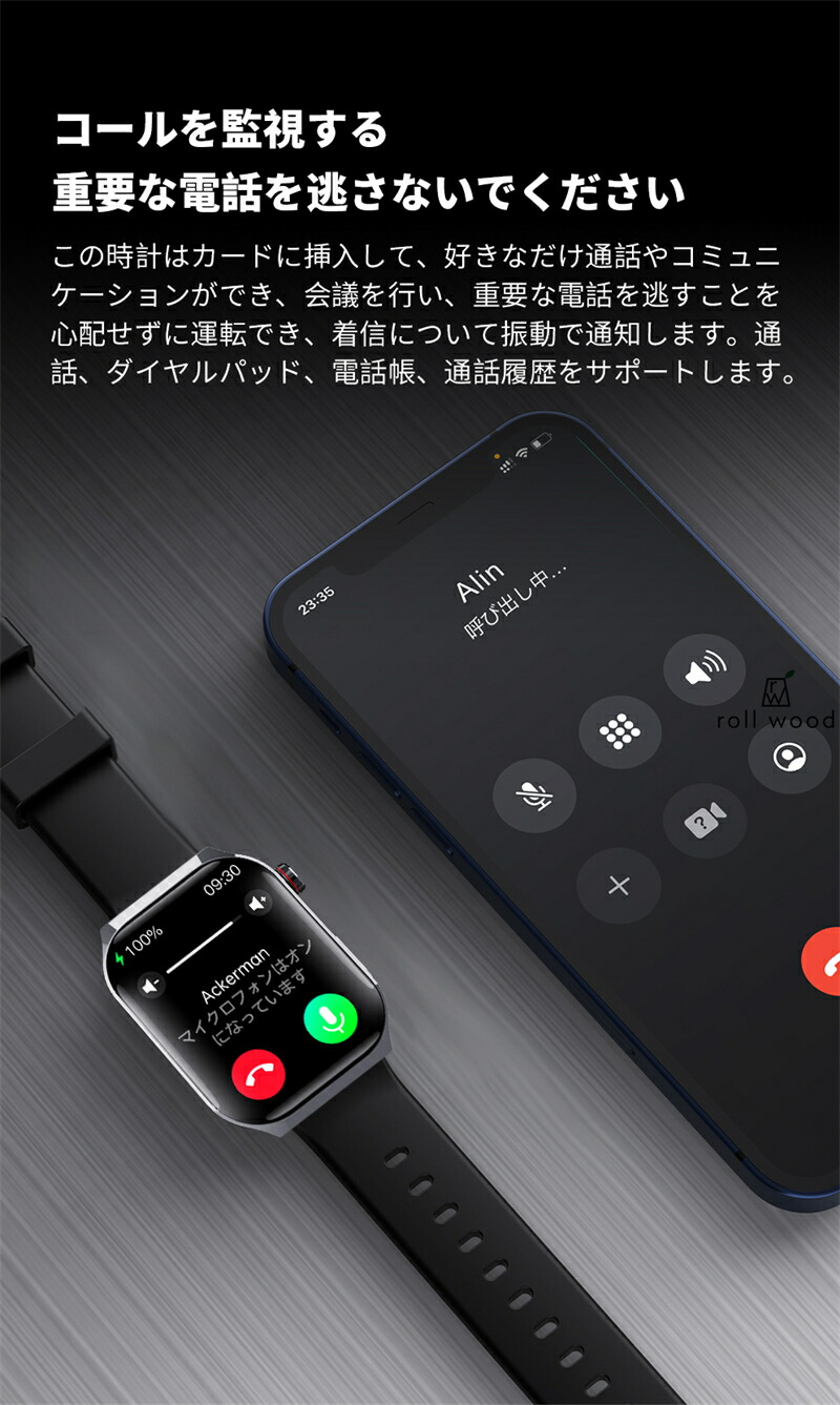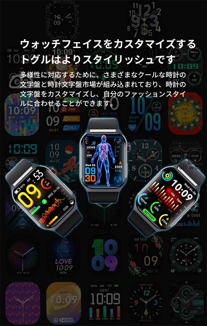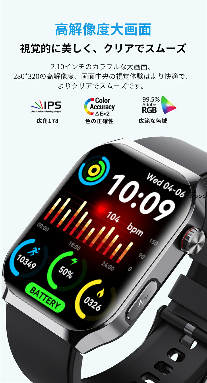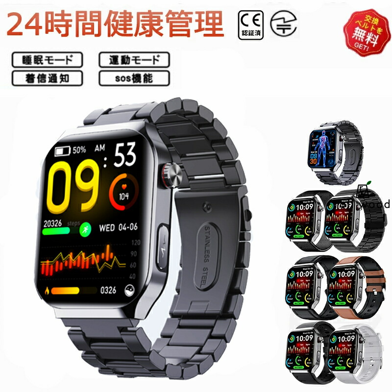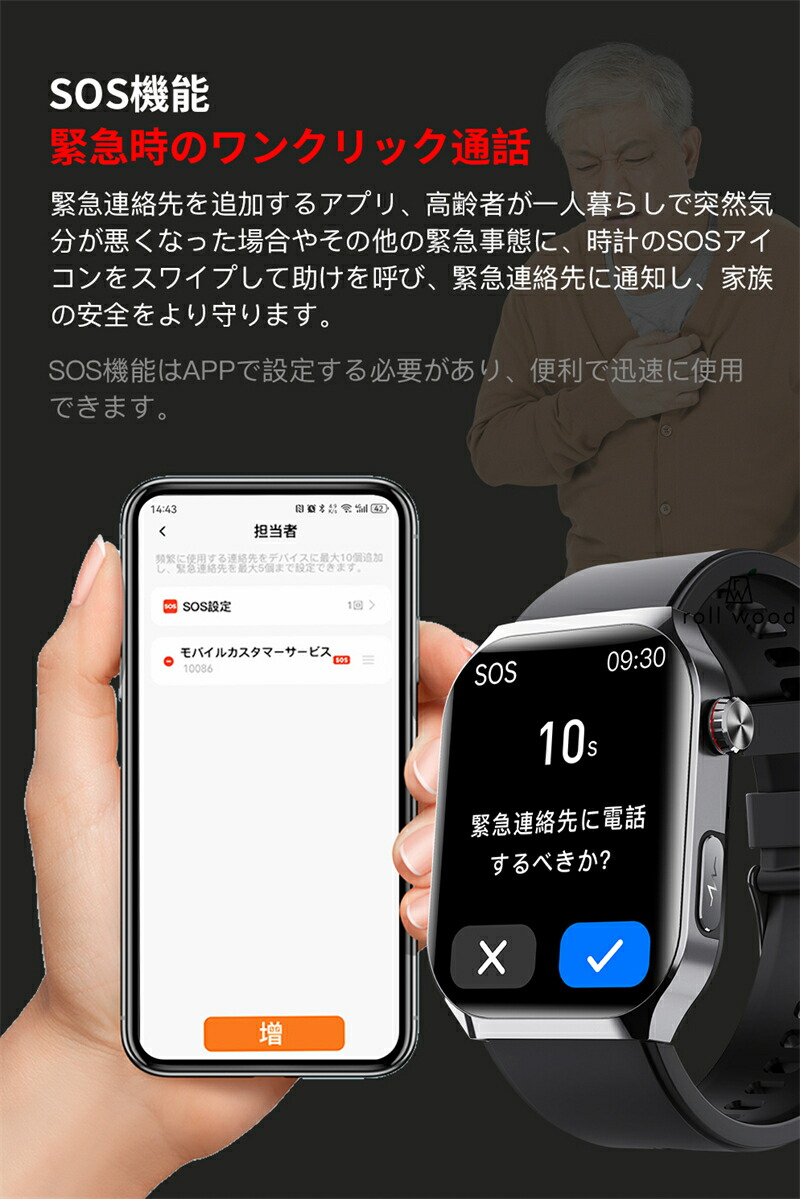 スマートウォッチ 日本製センサー SOS緊急電話 転倒アラーム 皮膚温度測定 音楽制御 通話機能 2.01インチ 大画面 IP67レベル プレゼント ギフト iPhon 日本語対応