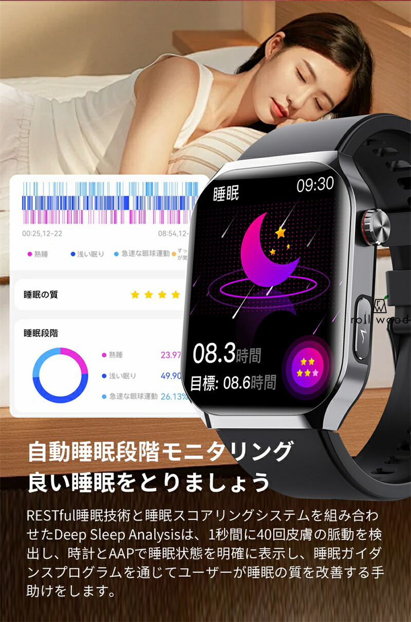 本活動量計で歩数、消費カロリー、距離などのデータを記録し、合理的に運動量、運動時間を管理することができます。また、睡眠データを記録でき、睡眠の質を計測可能となり、睡眠パターンの調整に活用できるスマートブレスレット。他にも着信通知、輝度調整、カメラ遠隔、スマホ探す、ストップウォッチ、アラーム、座りすぎ通知、腕上げ点灯などの機能があります。スポーツ性、ファッションと実用性を備え、クリスマス、新年、誕生日、記念日、父の日、母の日、敬老の日などに最適なプレゼントです。
