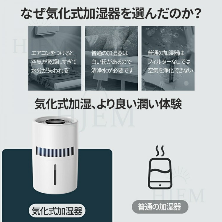 加湿器 卓上 4L大容量 気化式加湿器 なし(本体に1個付属) フィルター*1追加 フィルター*2追加
