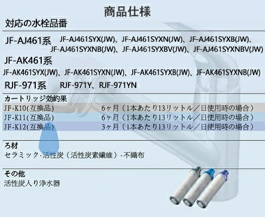 JF-K11 浄水栓用交換用カートリッジ 2個入り JF-K11-B 一体型浄水栓取替用 交換用 交換用浄水カートリッジ 互換品