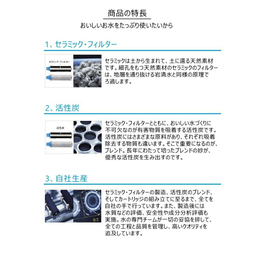 カートリッジ素材は独自のセラミックフィルターを使用しており、雑菌の繁殖が。しにくい抗菌仕様となっています。