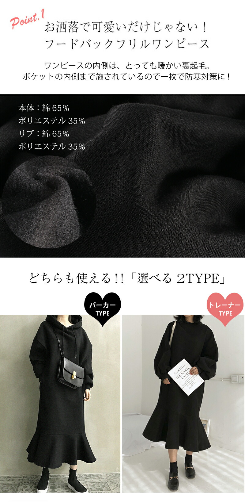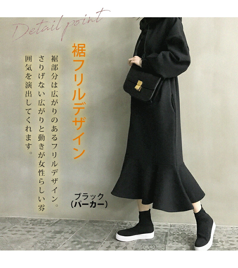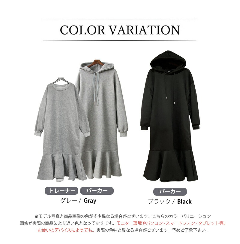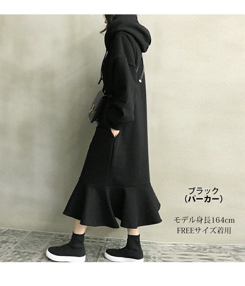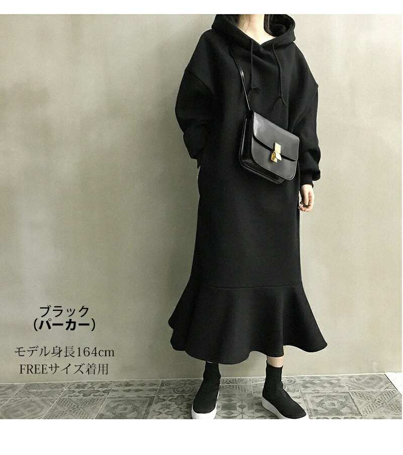 裏起毛 ワンピース マーメイド パーカ レディースファッション 新登場! ブラック(パーカー TYPE) グレー(パーカー TYPE) ブラック(トレーナー TYPE) グレー(トレーナー TYPE)
