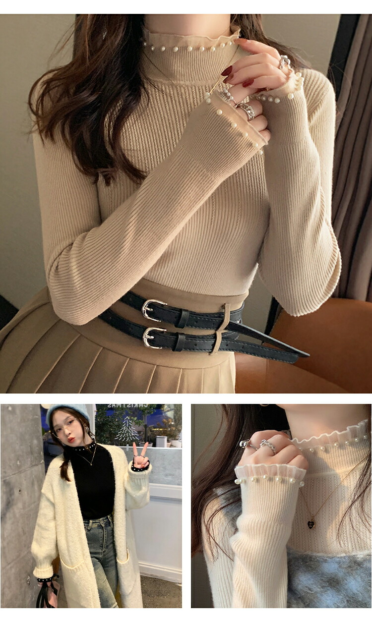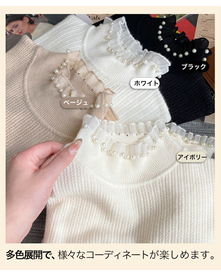 パール トップス ニット レディース レディースファッション 豊富 アイボリー ブラック ホワイト ベージュ