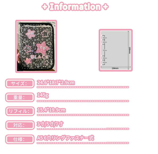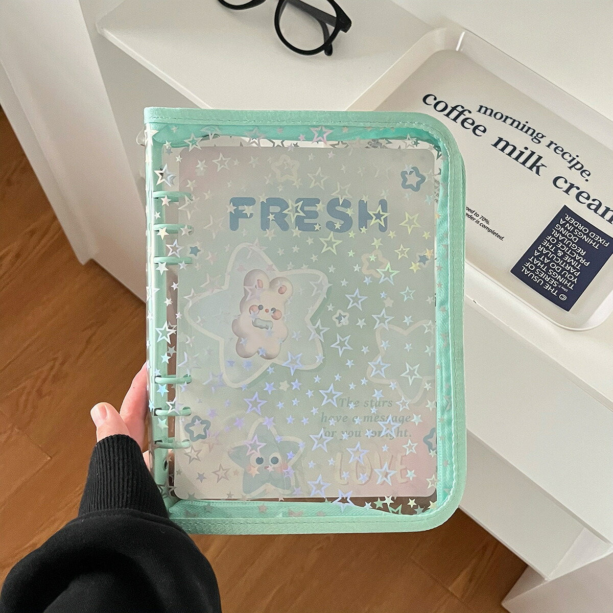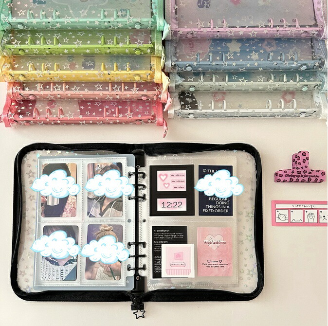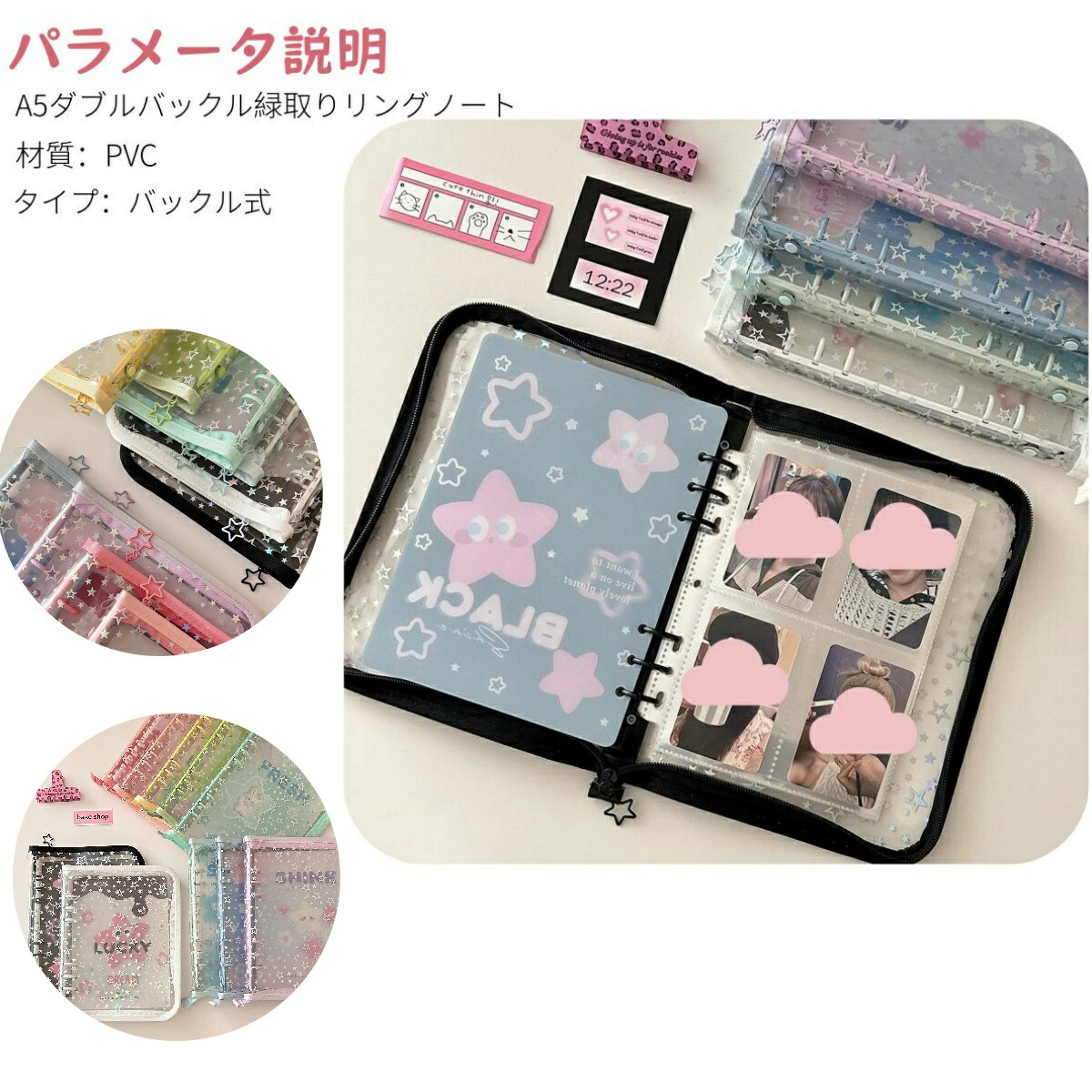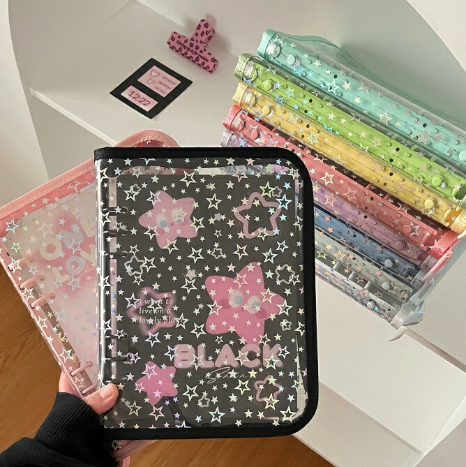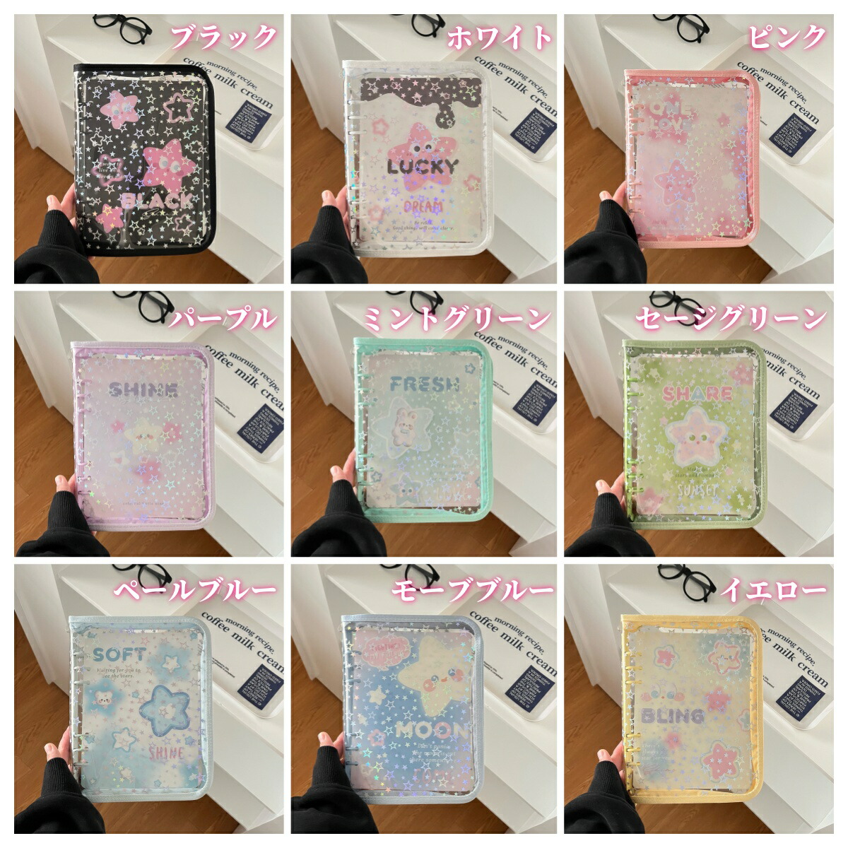透明シール帳 キラキラ輝く シールバイ 文房具 事務用品 手帳 ノート 手帳 超目玉商品 ブラック ホワイト ピンク パープル ミントグリーン セージグリーン ペールブルー モーブブルー イエロー A5 リフィルのみ A5(星柄) A5(星柄)+リファイル10枚 A5 リフィル10枚