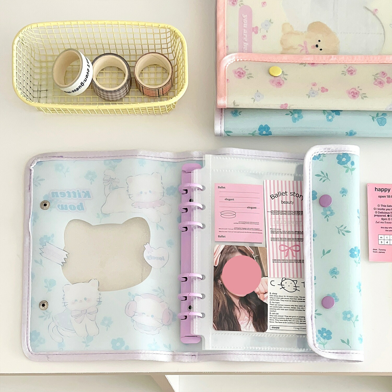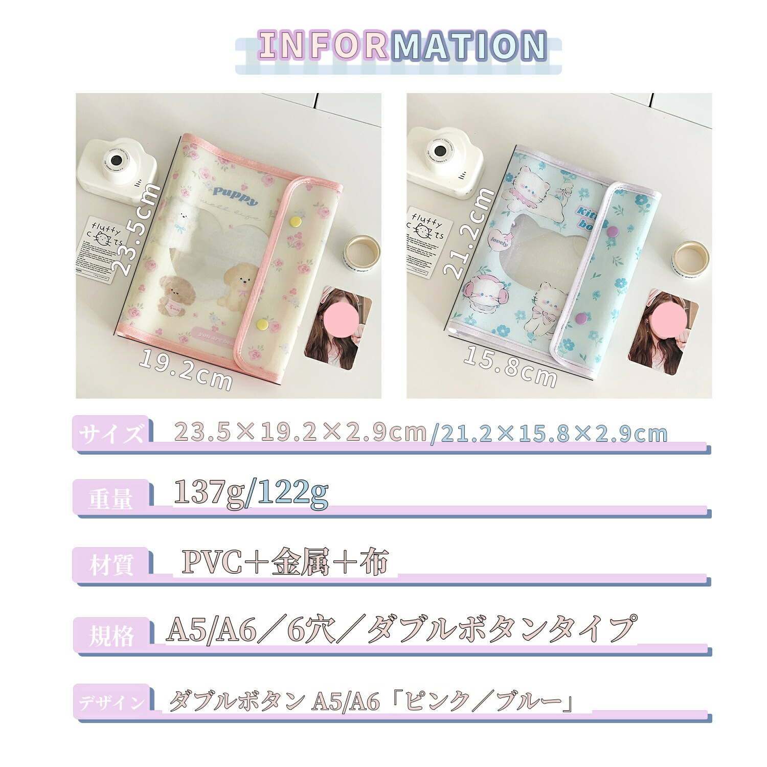 シール帳カバー PVCカバー A5 A 文房具 事務用品 手帳 ノート 手帳 新登場! A6 ブルー A6 ピンク A5 ブルー A5 ピンク リファイルなし リファイル10枚付き