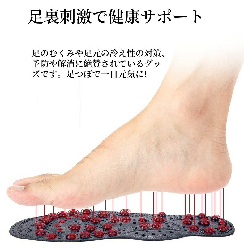 磁気インソール 足つぼ 中敷き 指圧イ ブラック ブルー クリア 35-40 41-45
