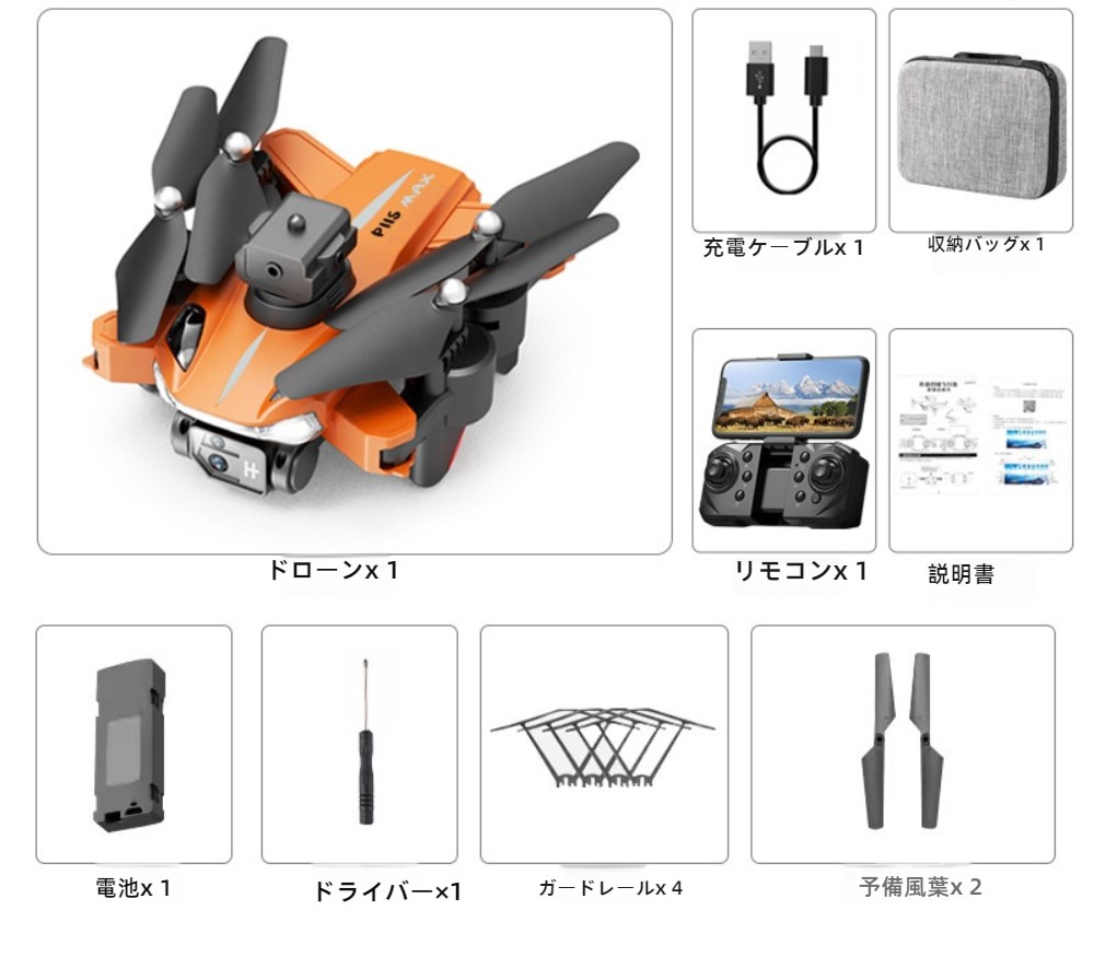 vlog カメラ ドローン カメラ付き ホビー 新作 ブラック オレンジ なし バッテリー*1 バッテリー*2