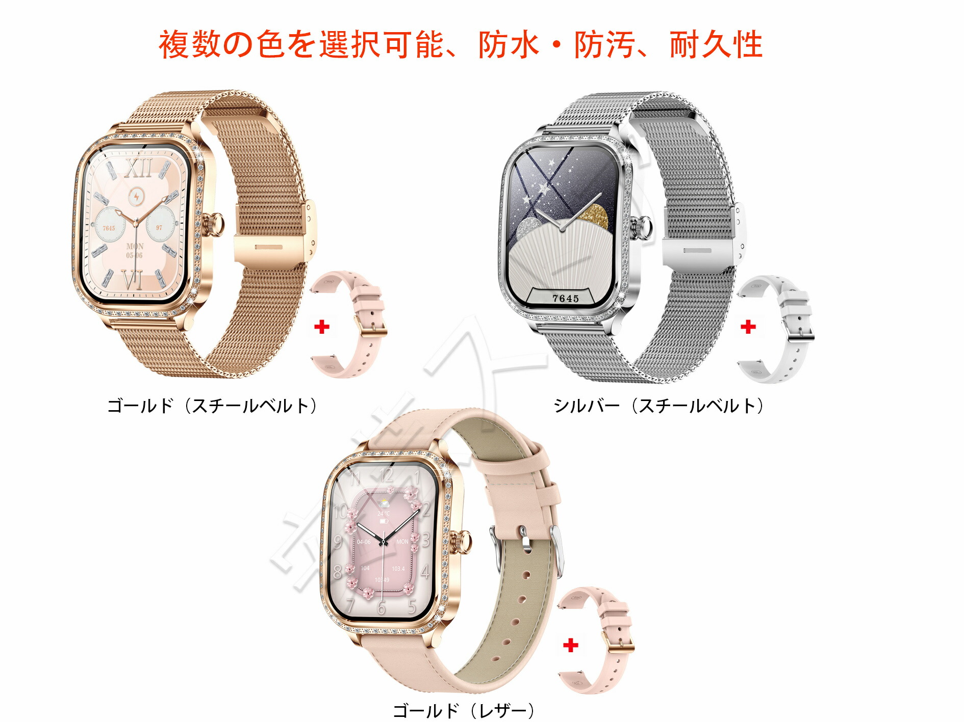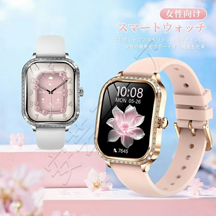 スマートウォッチ レディース 腕時計 ゴールド(スチールベルト) シルバー(スチールベルト) ゴールド(レザー)