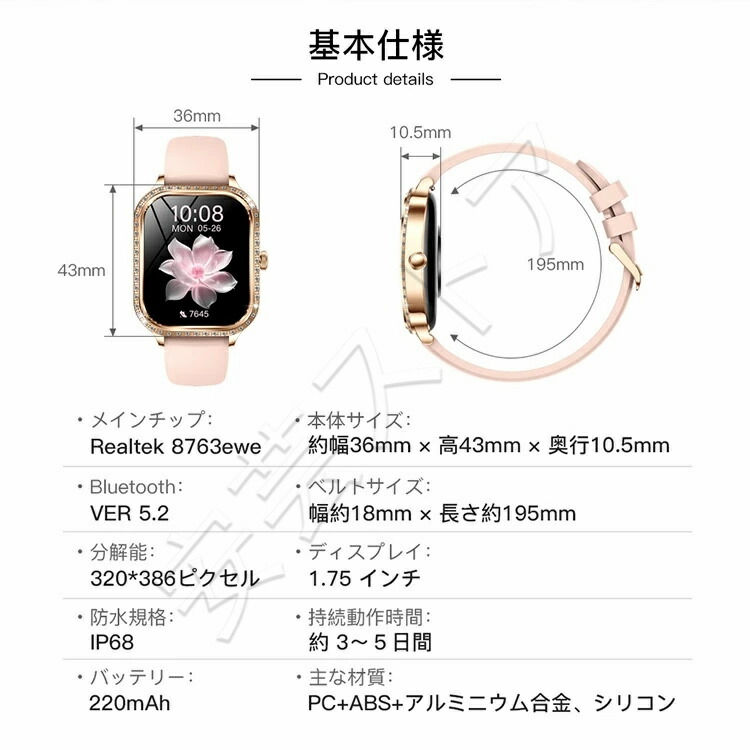 スマートウォッチ レディース 腕時計 ビジネススマートウォッチ 通話機能 スマートブレスレット 日本語 日本製チップ ios android 歩数計 心拍計 計測 モニター 運動記録 着信 健康管理