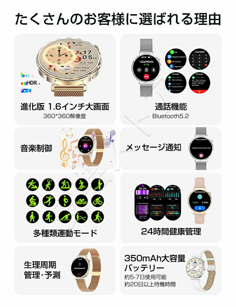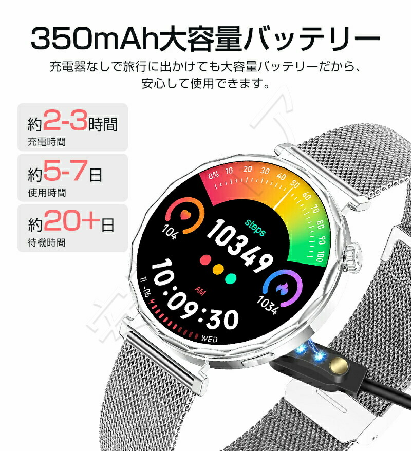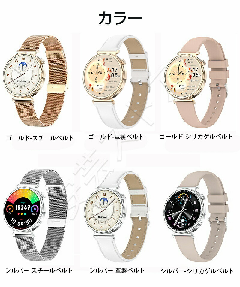 スマートウォッチ レディース 通話機能 ゴールド-スチールベルト ゴールド-革製ベルト ゴールド-シリカゲルベルト シルバー-スチールベルト シルバー-革製ベルト シルバー-シリカゲルベルト