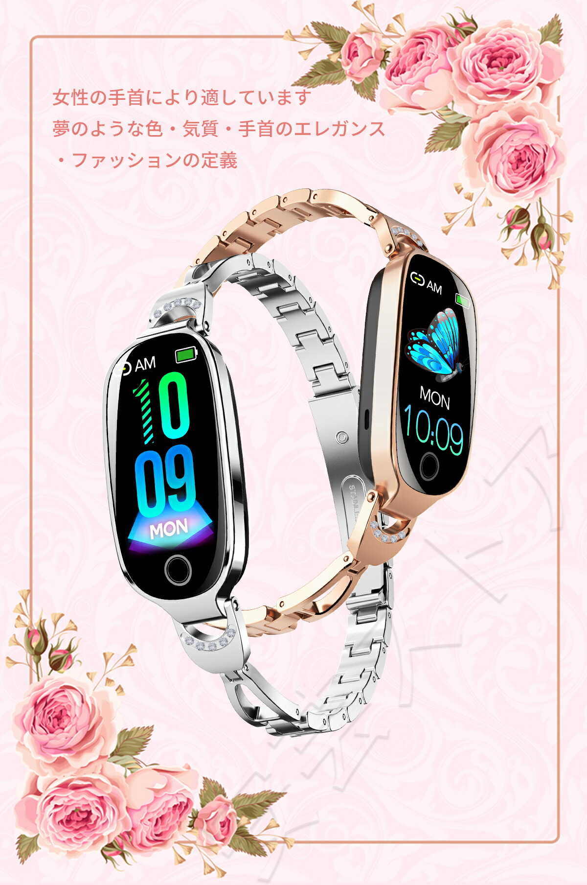 ビジネス スマートウォッチ レディース 銀 A 金 A