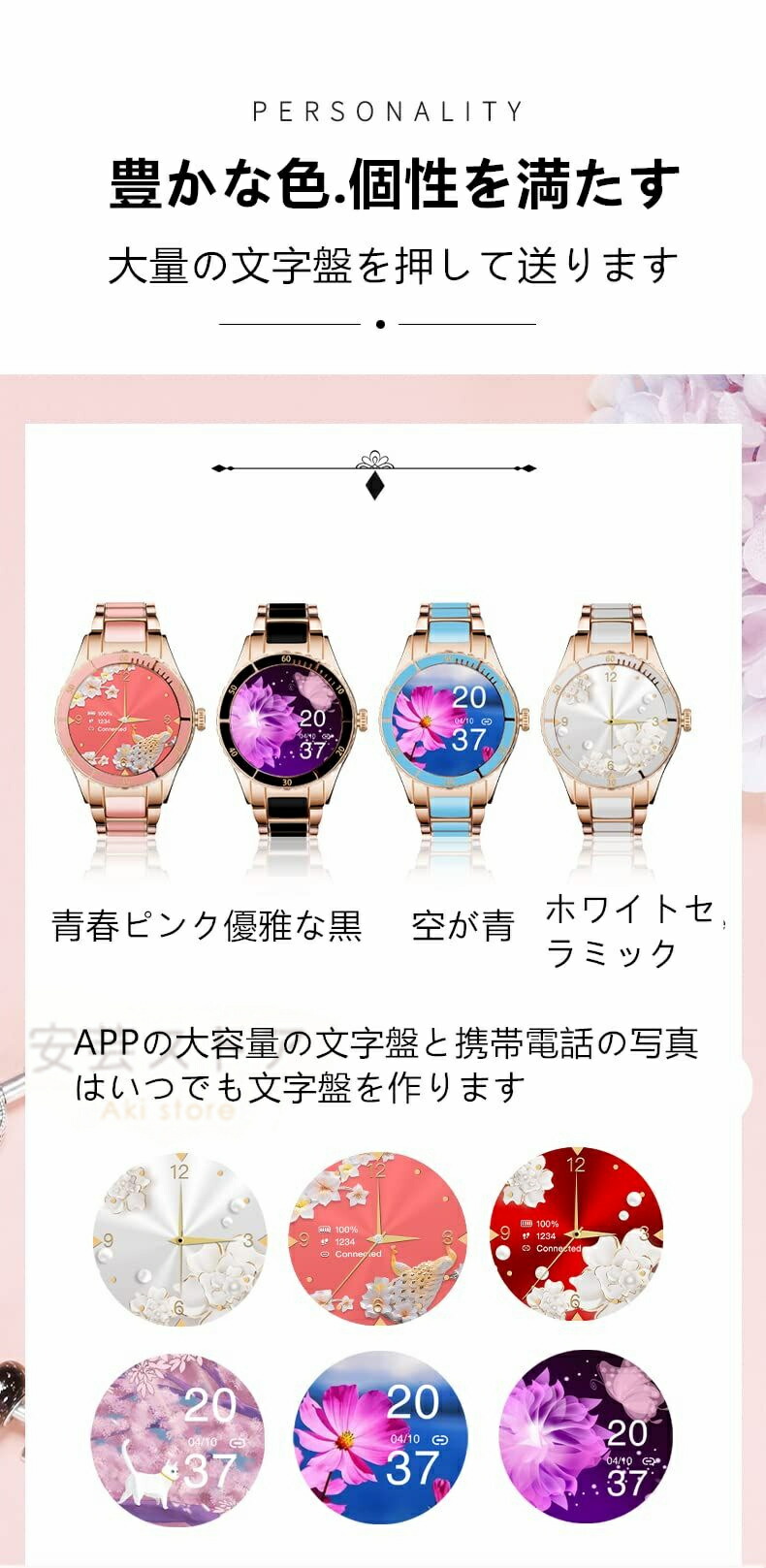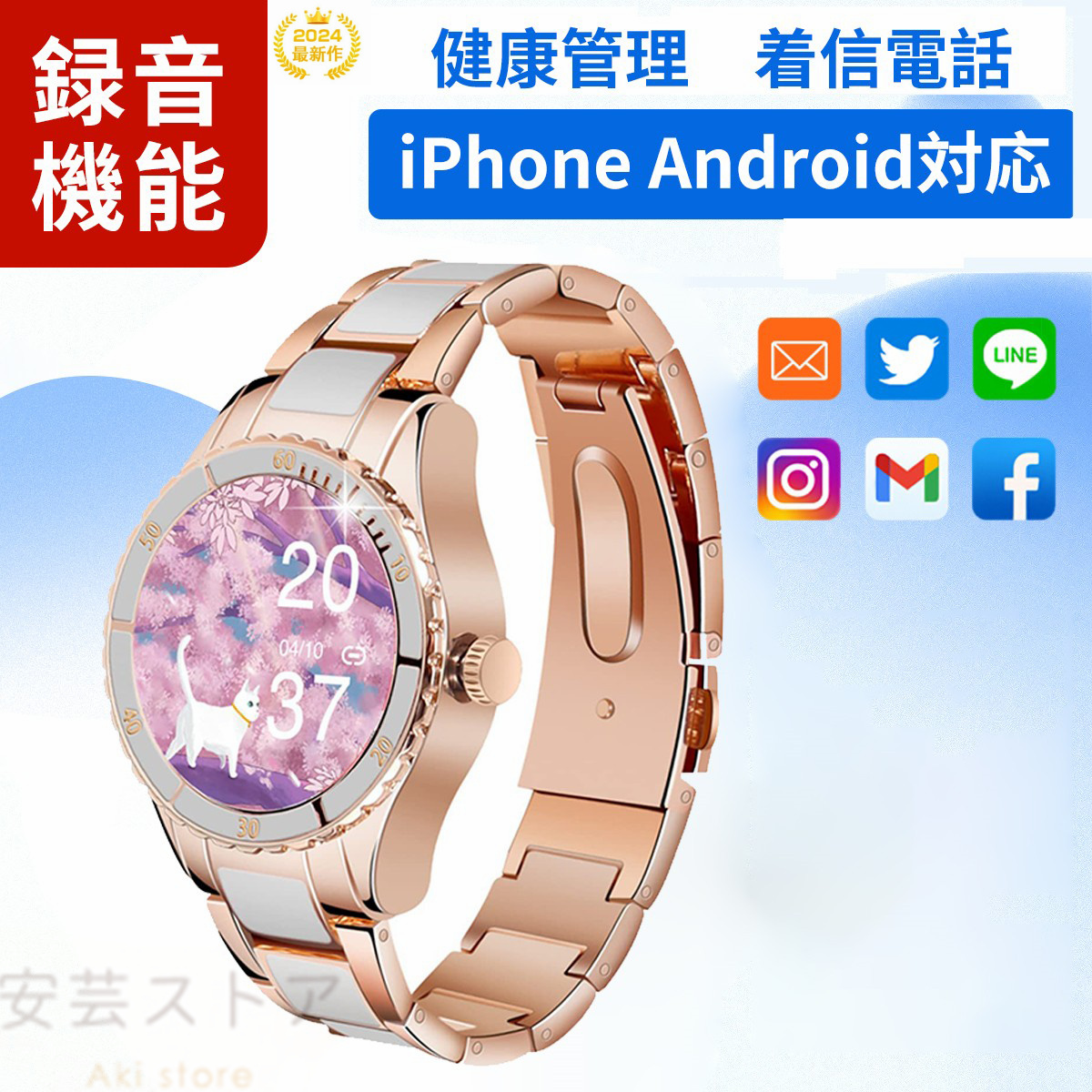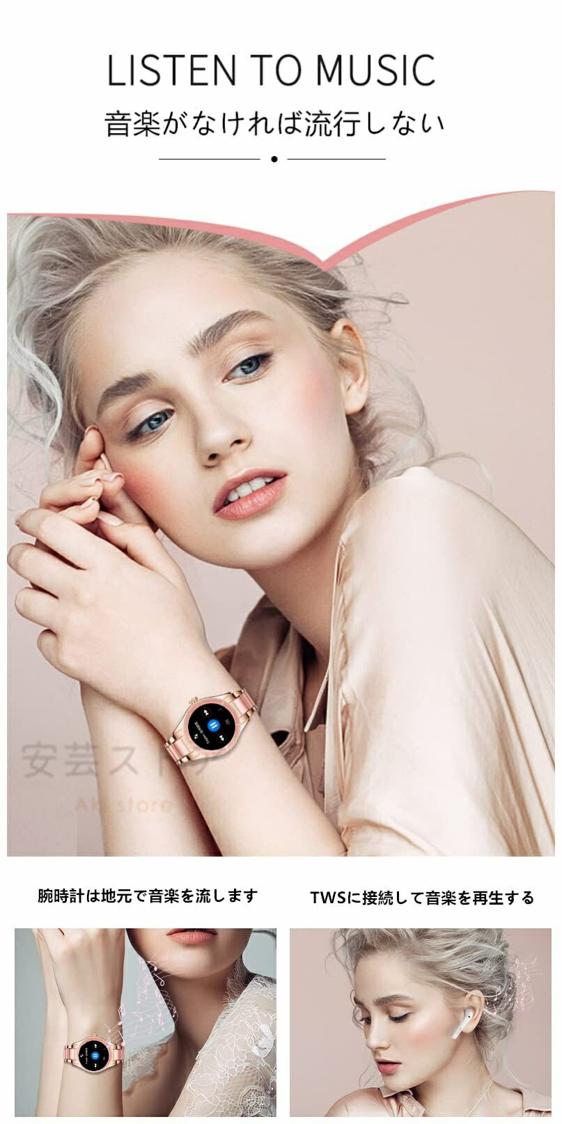 ビジネススマートウォッチ 日本製センサ ピンク 白 黒