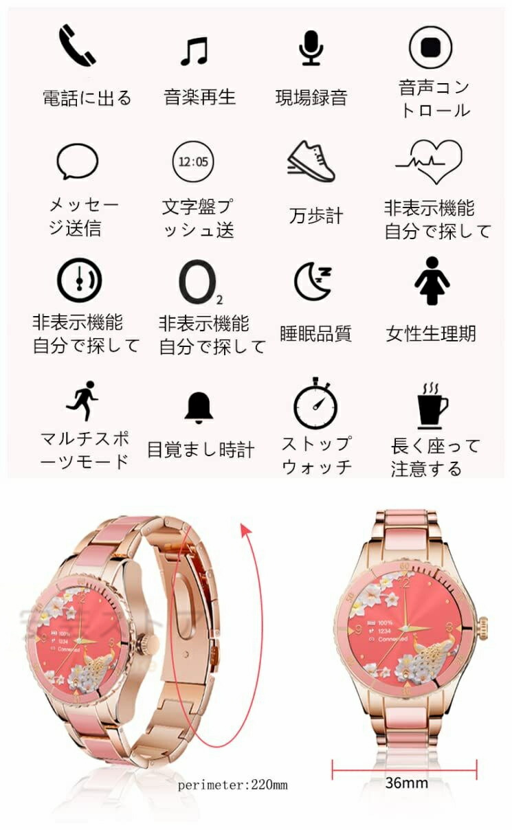 ビジネススマートウォッチ 日本製センサ ピンク 白 黒