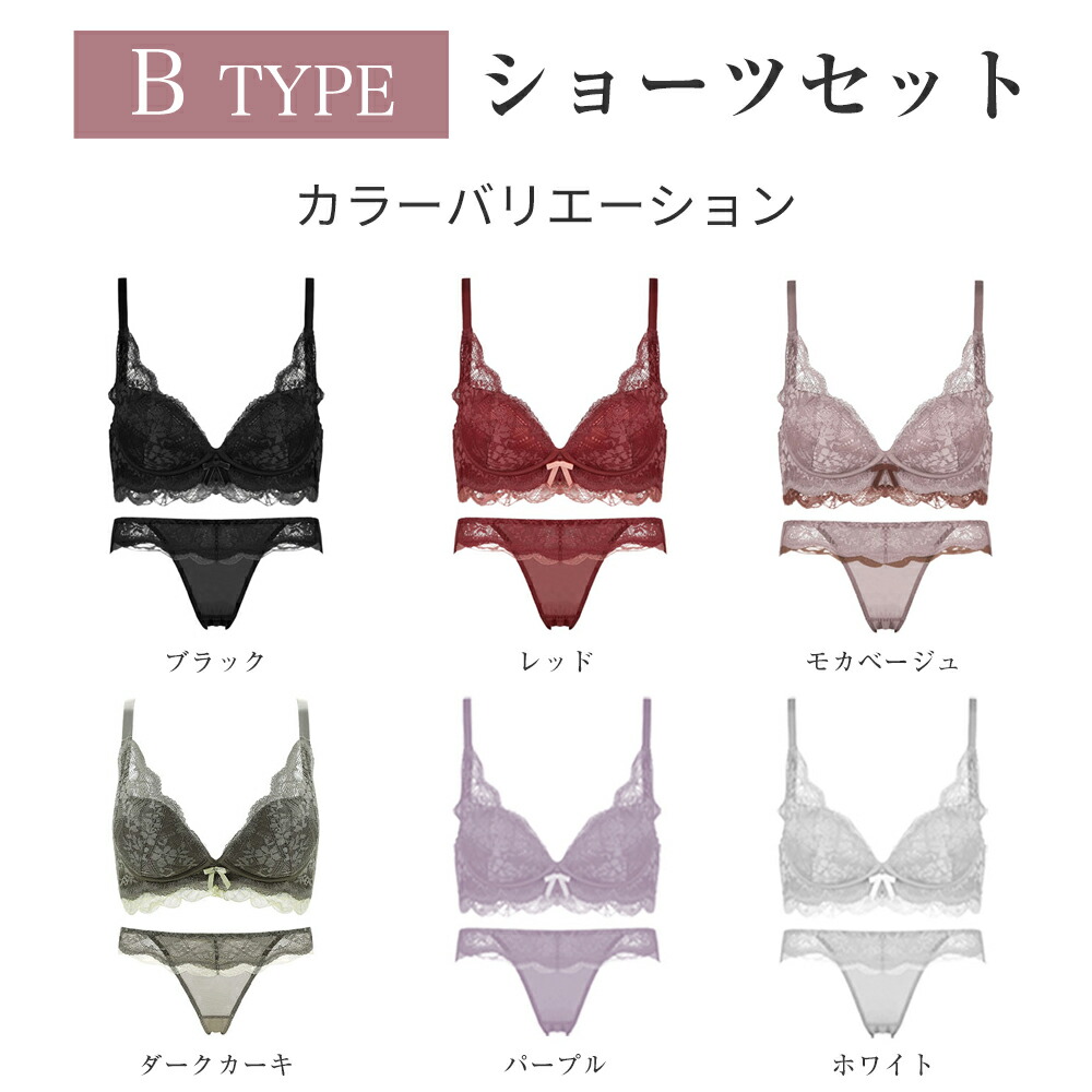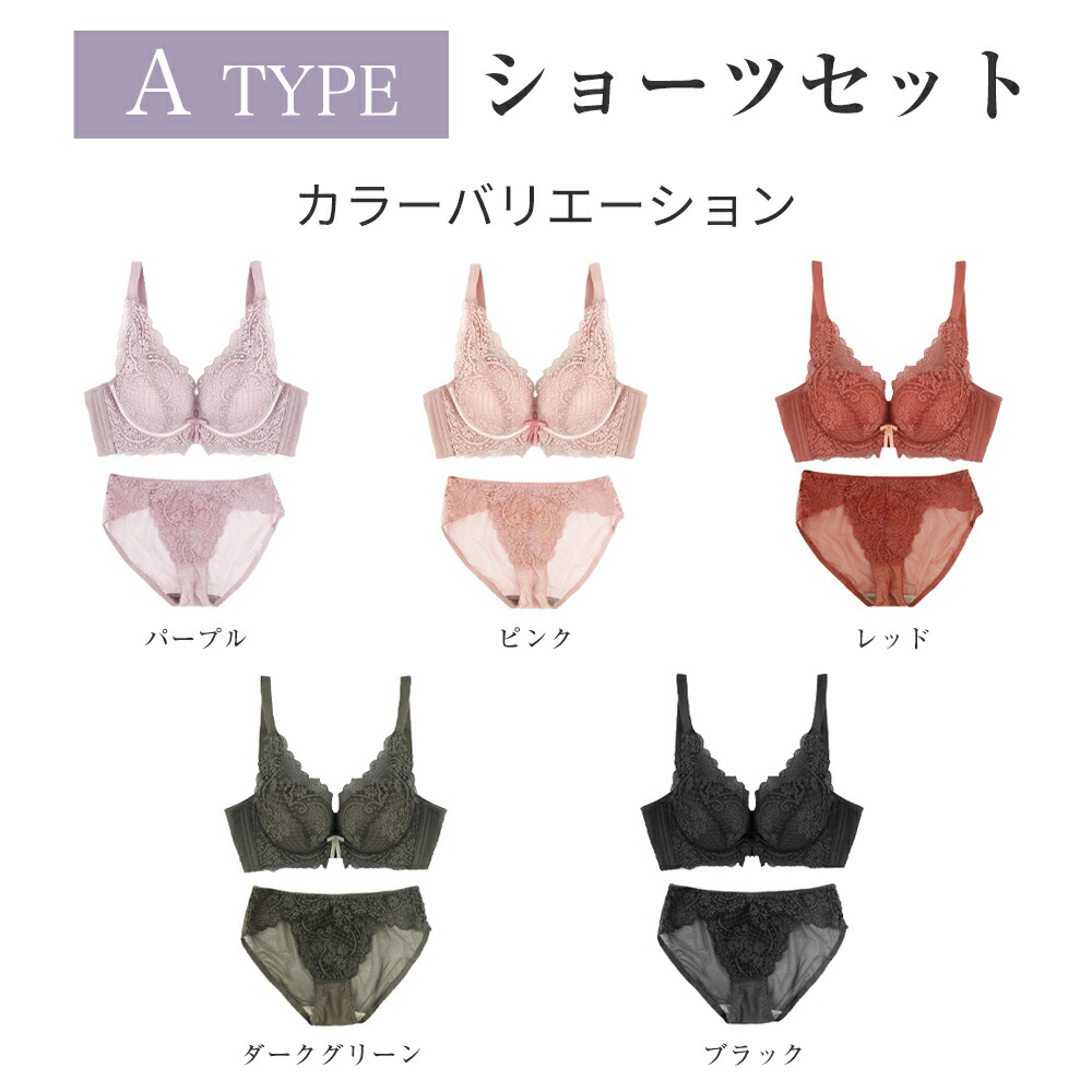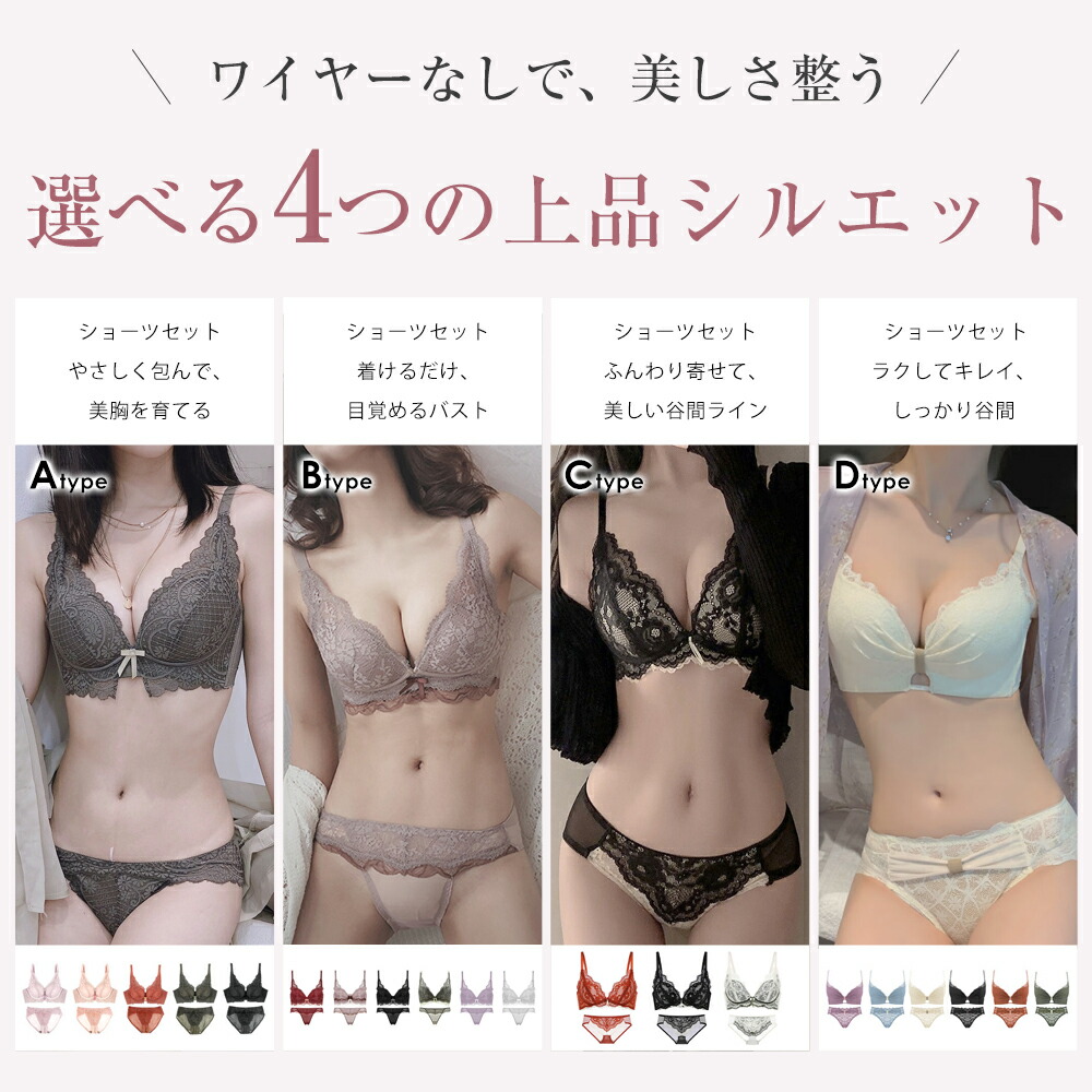 ノンワイヤー 脇高ブラジャー ショーツ レディース インナー 下着 セット ブラジャー&ショーツ 豊富 Aタイプ Bタイプ Cタイプ Dタイプ ブラック ホワイト ピンク パープル アイボリー グリーン レッド モカ-ベージュ ダークカーキ ダークグリーン ウォーター