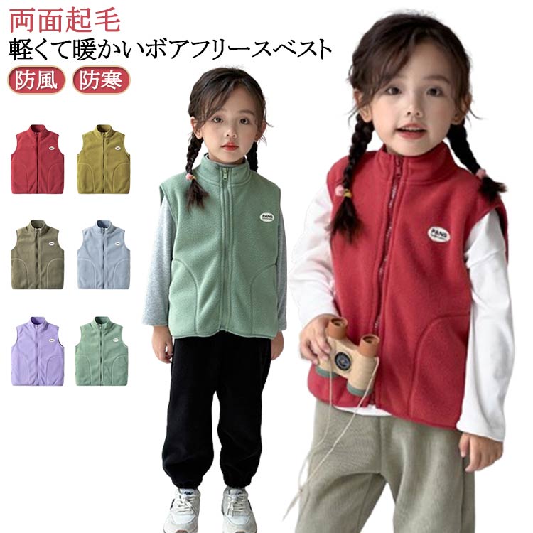 ボアフリースベスト キッズ ボアベスト キッズ トップス ベスト 早い者勝ち レッド マスタード グリーン グレー ブルー パープル 100 110 120 130 140 150
