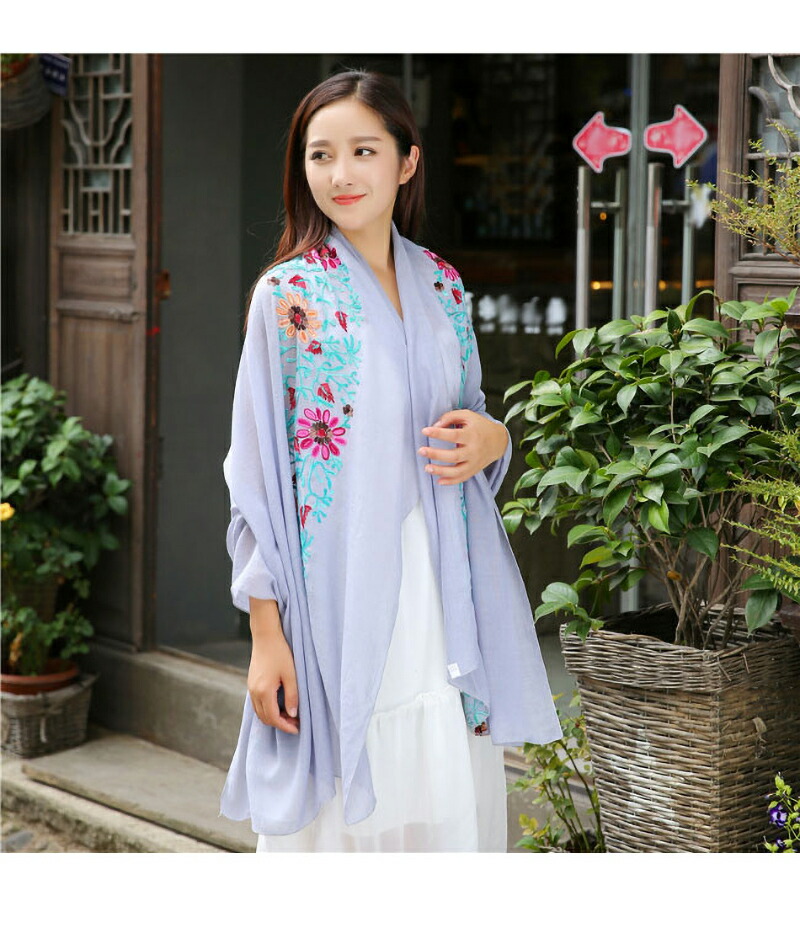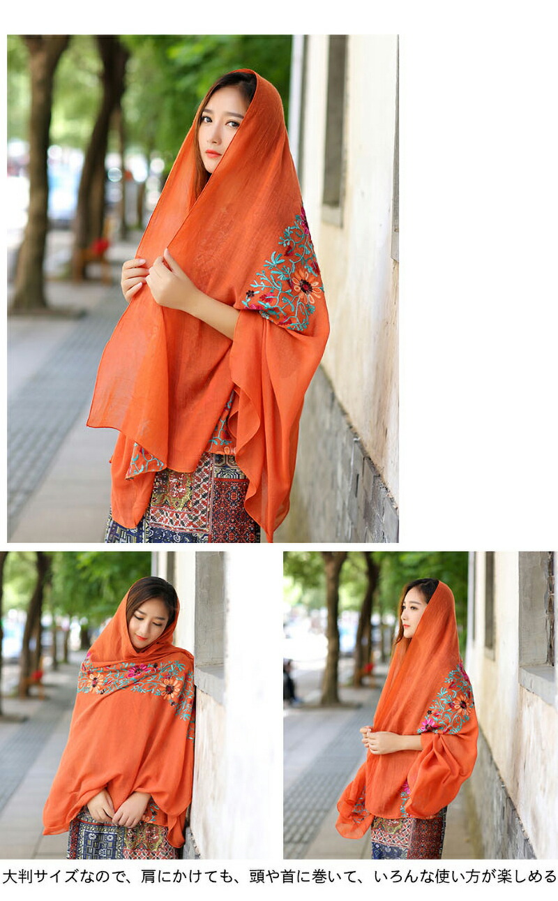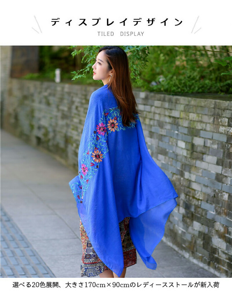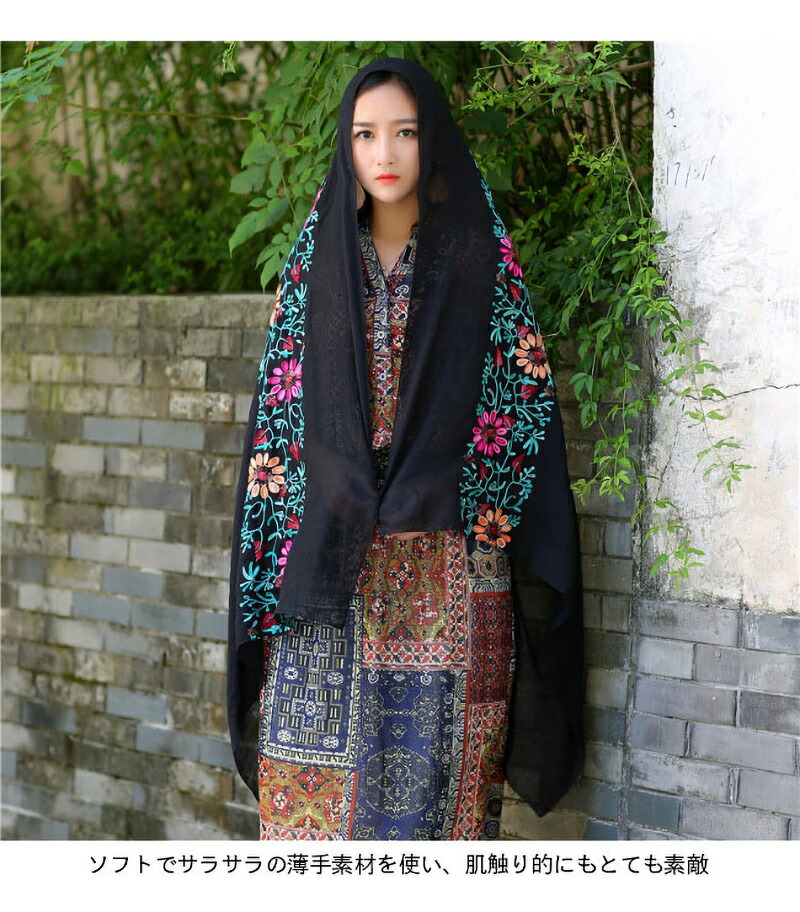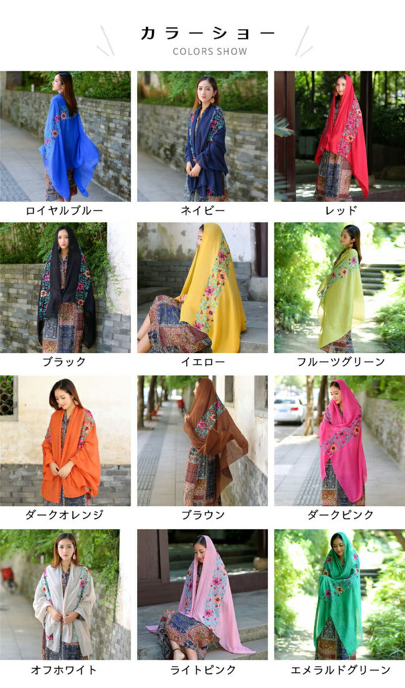 ストール 刺繍 大判 マフラー 秋新作 バッグ 小物 ブランド雑貨 通販 ロイヤルブルー ネイビー レッド ブラック イエロー フルーツグリーン ダークオレンジ ブラウン ダークピンク オフホワイト ライトピンク エメラルドグリーン ダークグリーン ブルー スイカレッド ライトオレンジ ワインレッド バラ色 ホワイト グレー