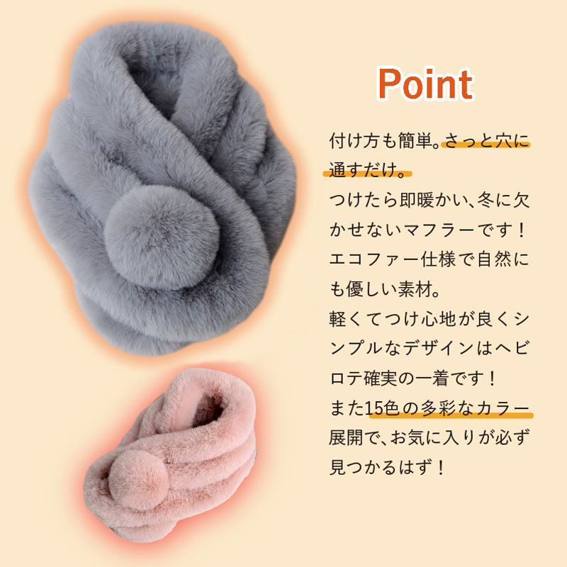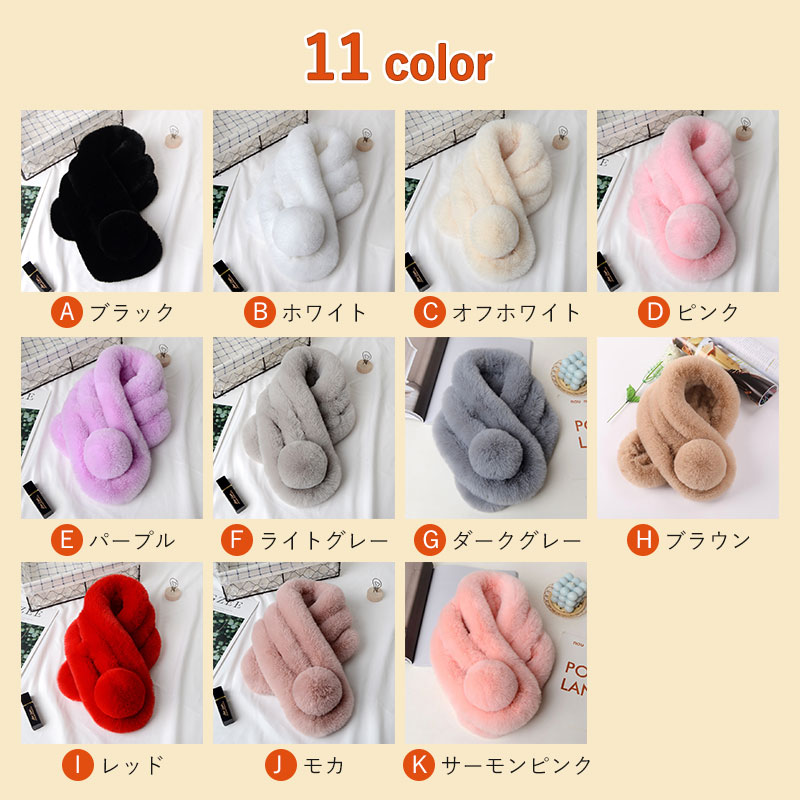 ふんわり暖かファーマフラー ティペット マフラー スカーフ ネックウォーマー スヌード 新登場! A.ブラック B.ホワイト C.オフホワイト D.ピンク E.パープル F.ライトグレー G.ダークグレー H.ブラウン I.レッド J.モカ K.サーモンピンク