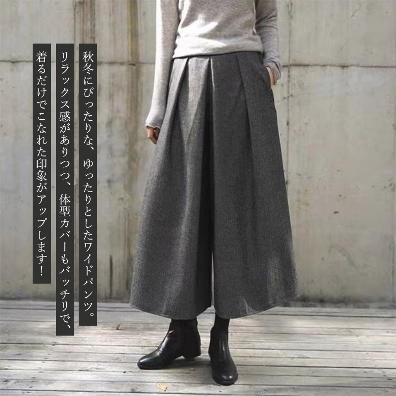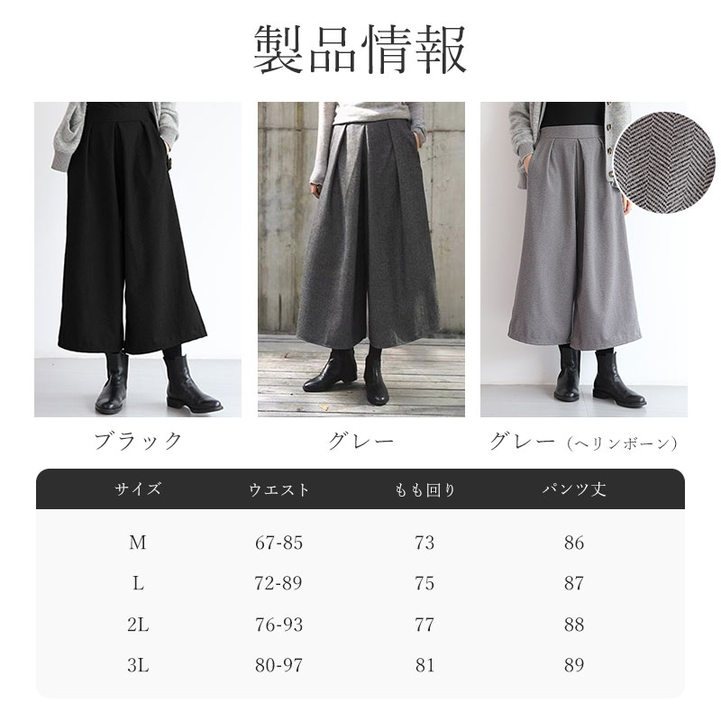 ガウチョパンツ レディース 春 秋冬 ボトムス キュロットスカート 続々入荷中 ブラック グレー グレー(ヘリンボーン) M L XL 2XL