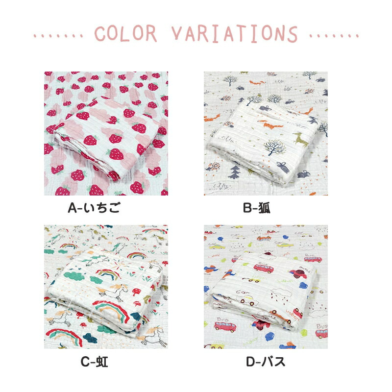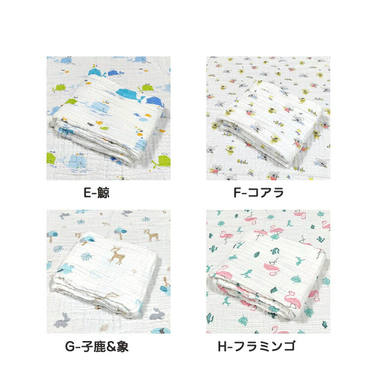 ガーゼタオル フェイスタオル 速乾 お ベビー ベビー服 ファッション おくるみ 通販 Aいちご B-狐 C-虹 D-バス E-? F-コアラ G-子鹿&象 H-フラミンゴ