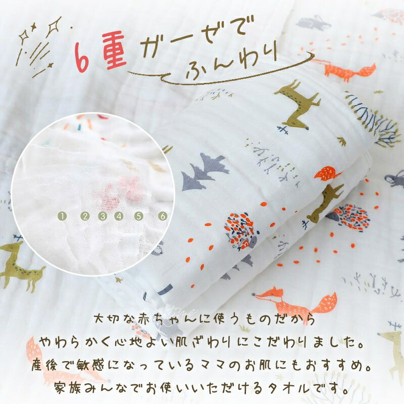 ガーゼタオル フェイスタオル 速乾 おしゃれ 綿100% かわいい 可愛い 赤ちゃん ベビー キッズ 子供 新生児 ブランケット 柔らかい ふわふわ 銭湯 大人 6重 お風呂