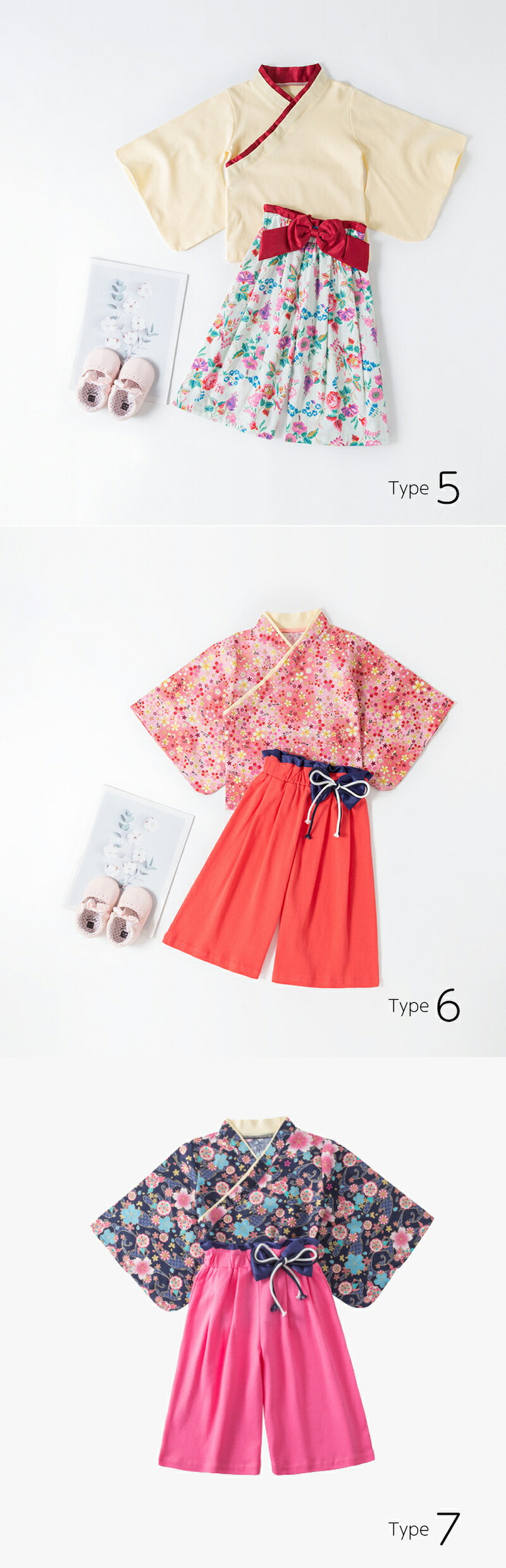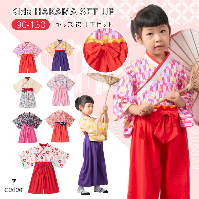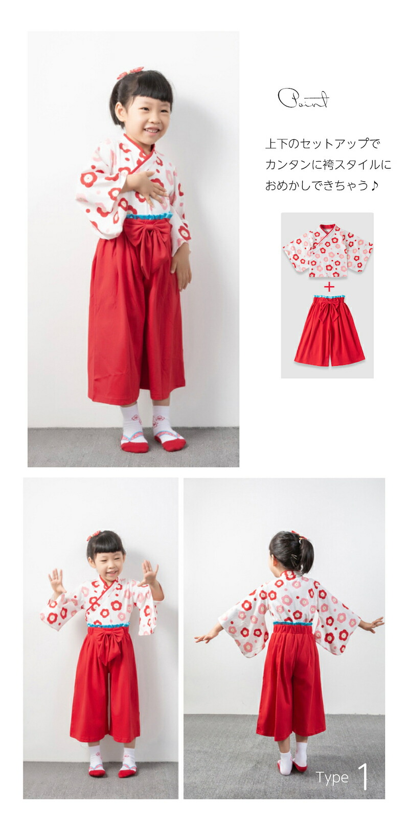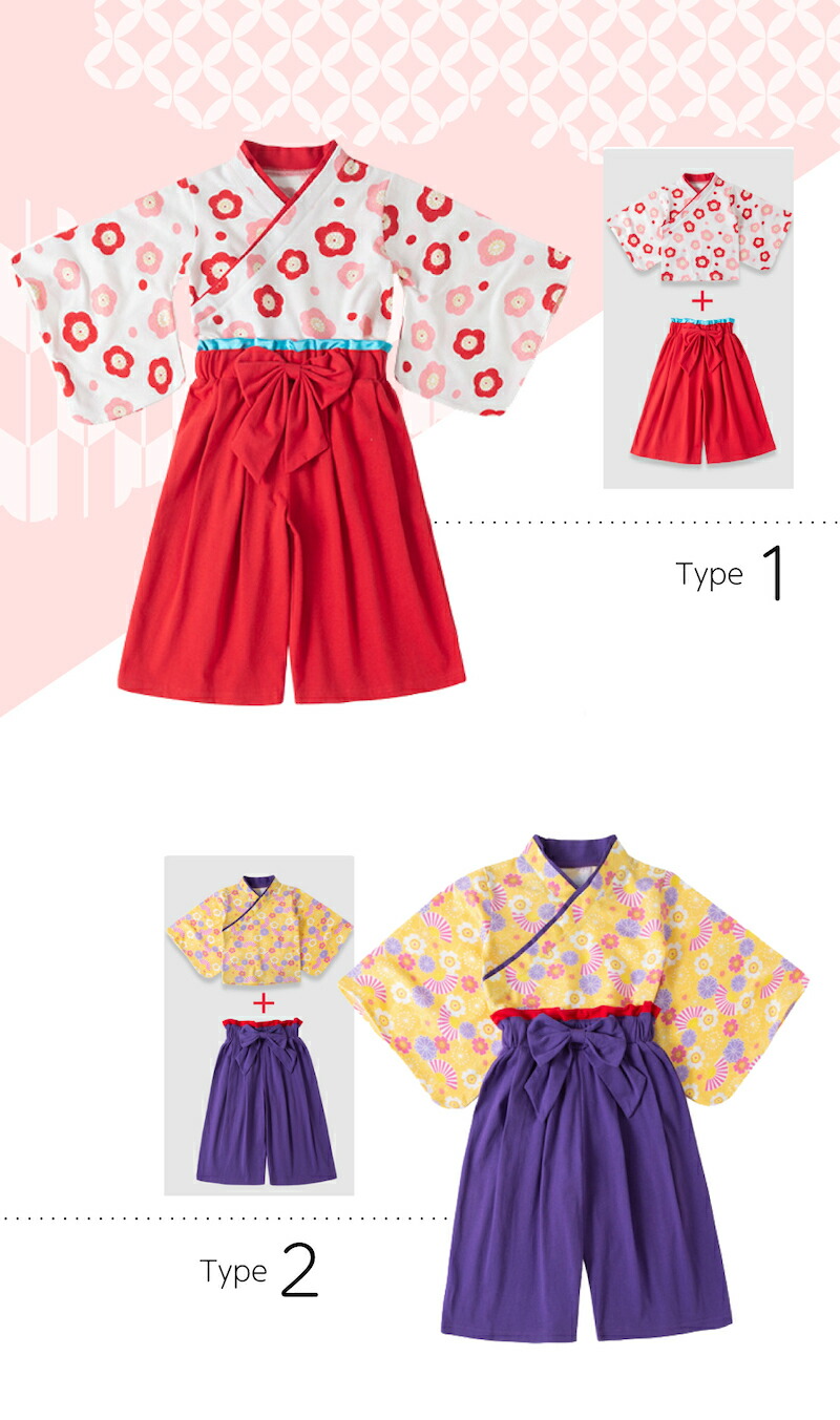 4歳~8歳児 袴 2点セット 上下セッ type1 type2 type3 type4 type5 type6 type7 90 100 110 120 130