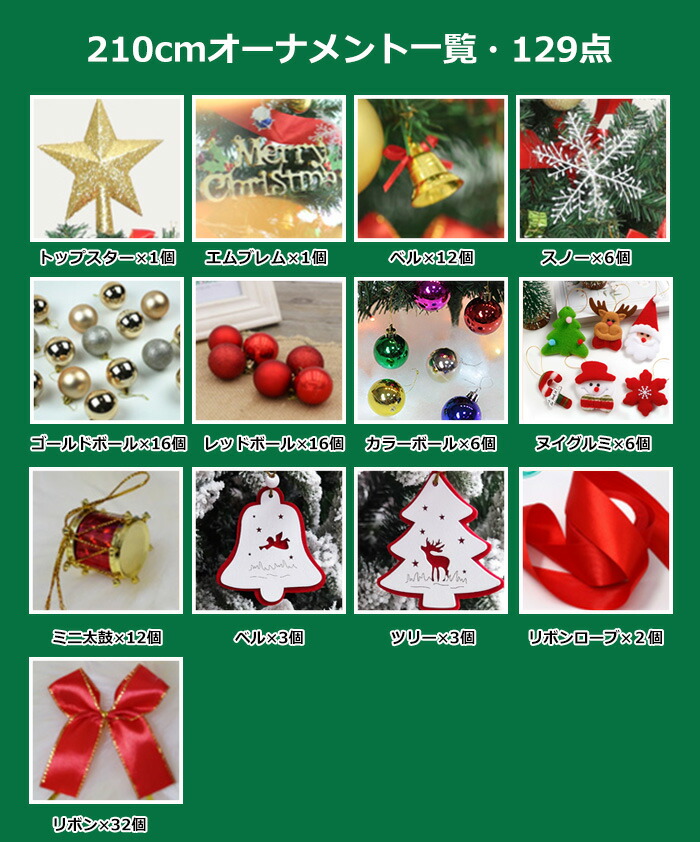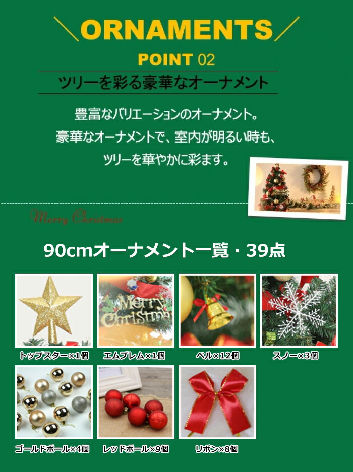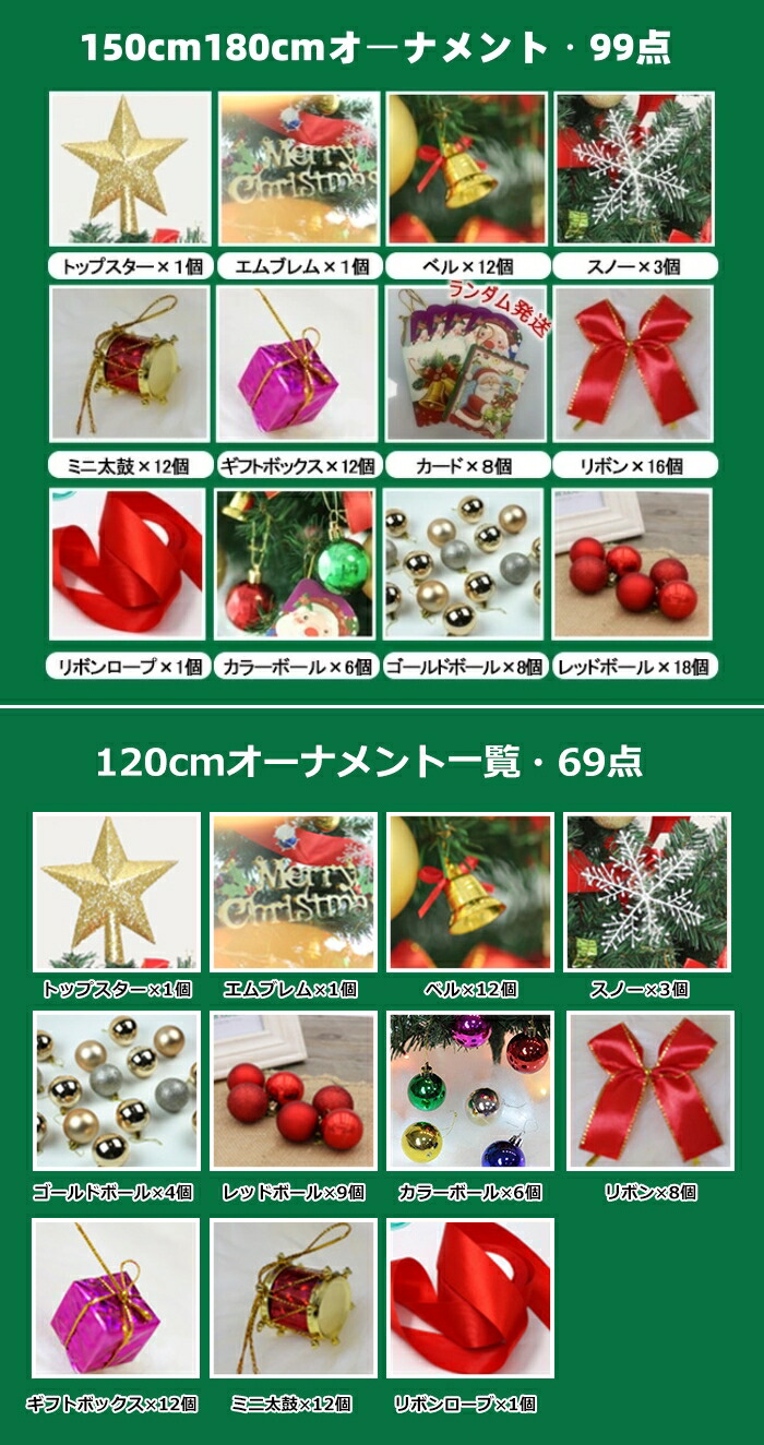 クリスマスツリー 90cm 120cm 90cm-39点オーナメント 120cm-69点オーナメント 150cm-99点オーナメント 180cm-99点オーナメント 210cm-129点オーナメント