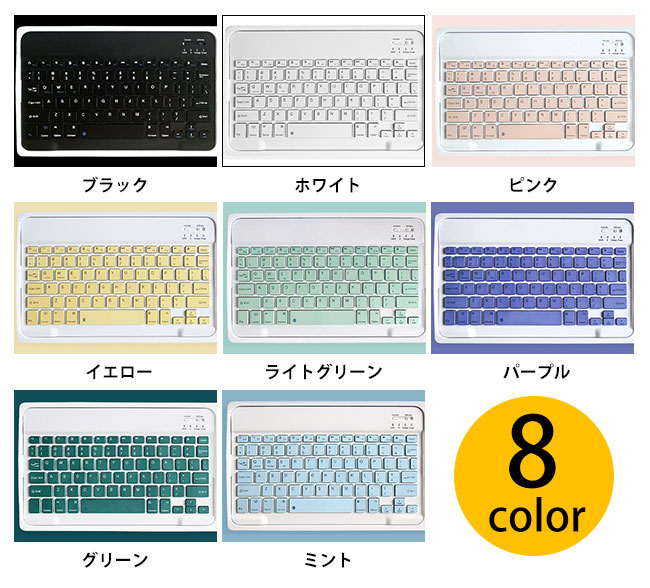 ワイヤレスキーボード Bluetoot ブラック ホワイト ピンク ライトグリーン グリーン ミント イエロー パープル
