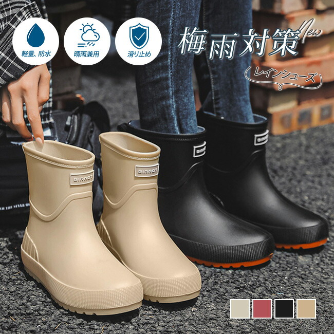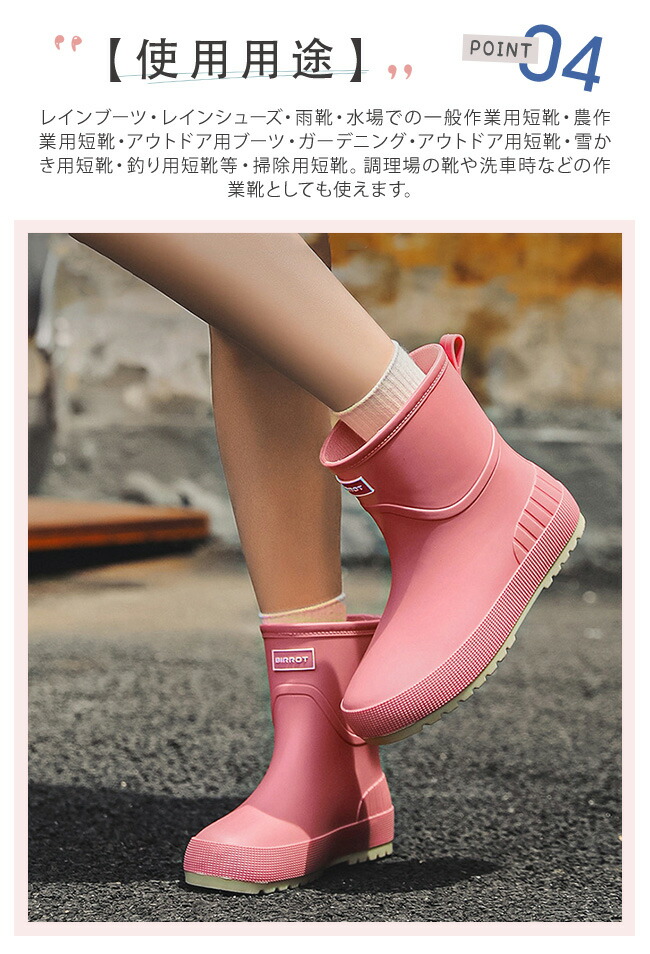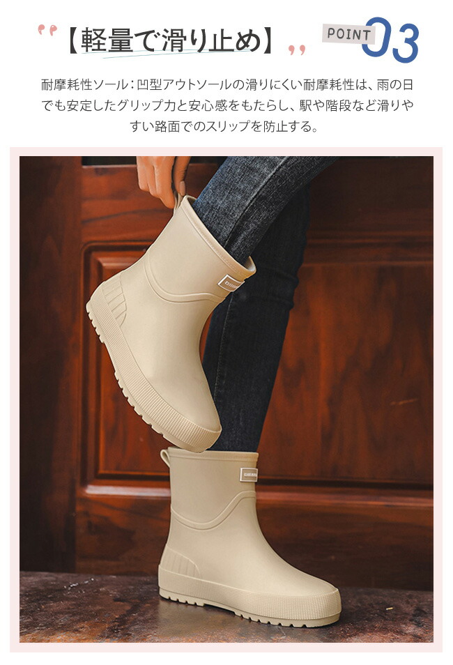 レインブーツ レディース レインシューズ 長靴 防水シューズ 雨靴 ショート ブーツ 軽量 滑り止め 晴雨兼用 通勤 通学 梅雨対策 台風 釣り 農作業 短靴 園芸