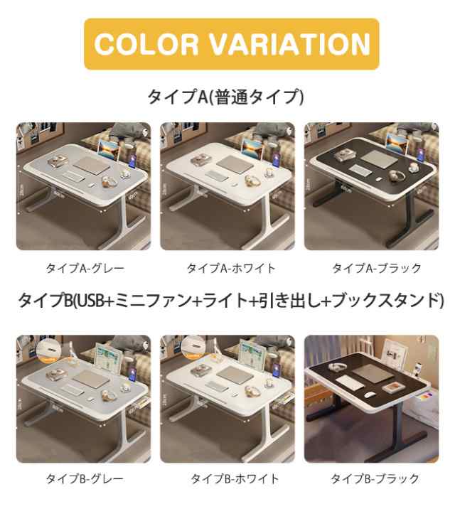 多機能折りたたみテーブル ローテーブル グレー ホワイト ブラック タイプA タイプB