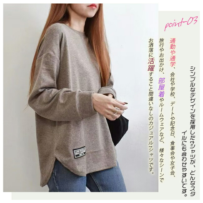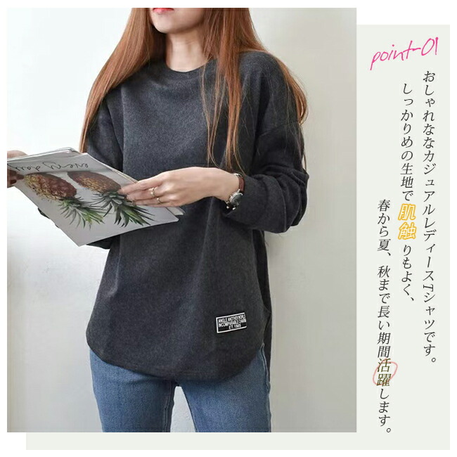 長袖Tシャツ レディース トレーナー レディースファッション 特集 ブラック カーキ ライトグレー ダークグレー