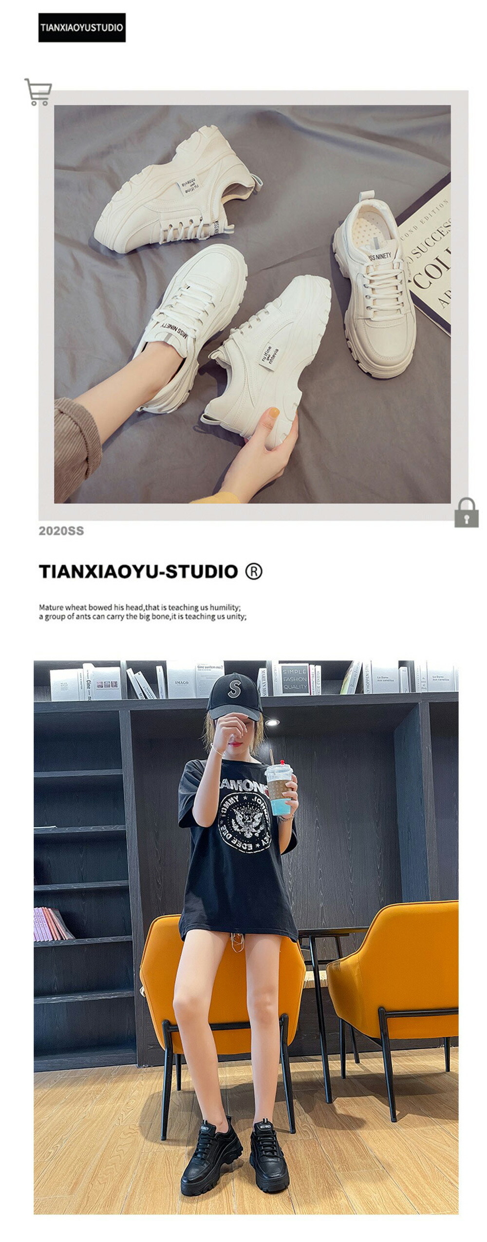 【美脚効果】 約五センチの厚底なので、靴底が厚くて、適度な体格比率をアップし、美脚効果を実現、自信を増強します!