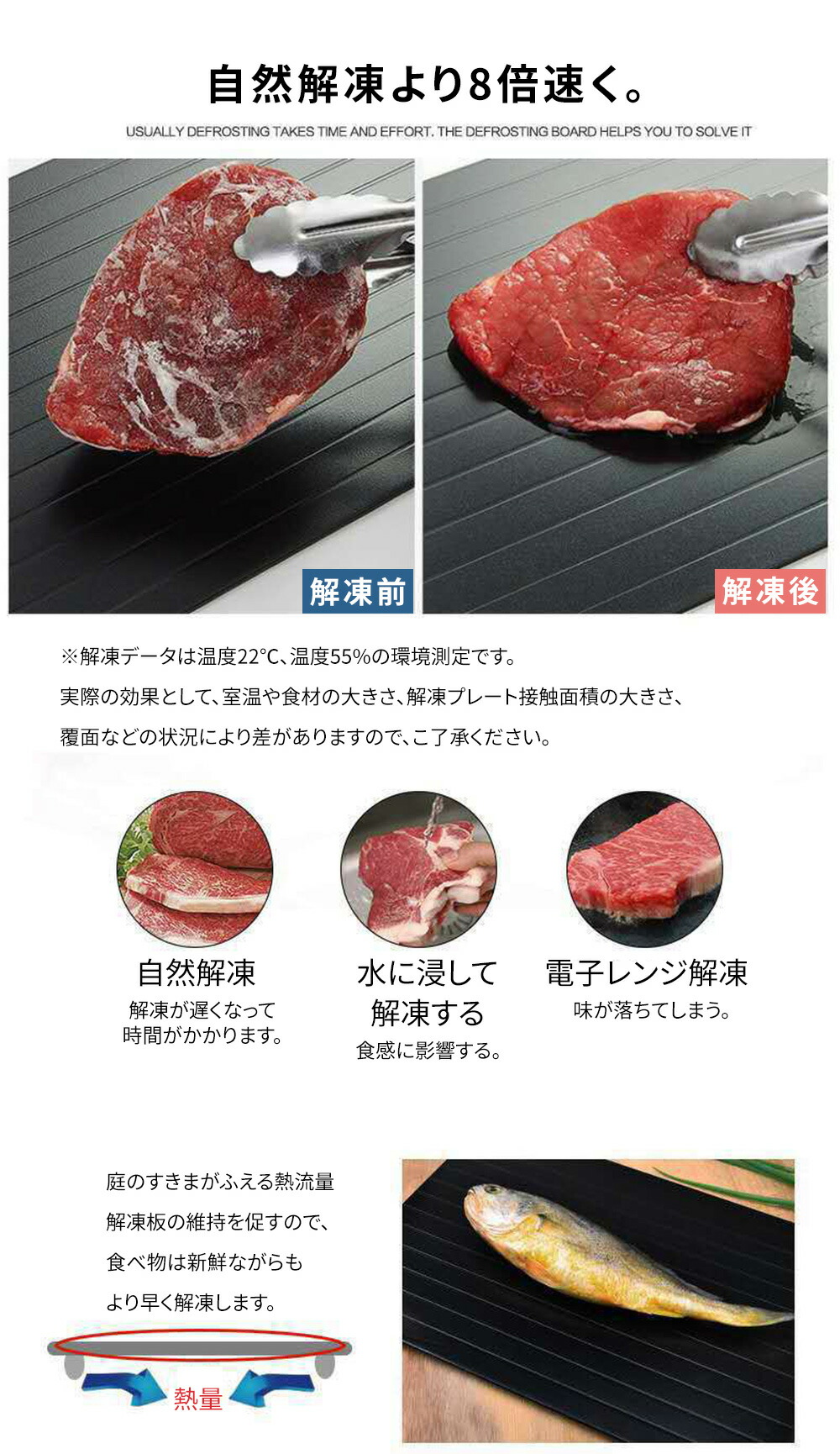 *【利点】解凍プレート 解凍速度が速く、時間が短いため、時間を効果的に節約し、食品本来の味と栄養を維持し、健康的で衛生的です。 耐食性があり長寿命です。
