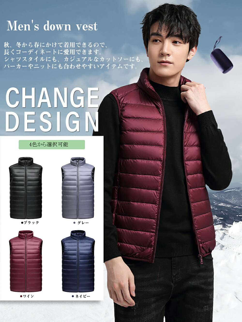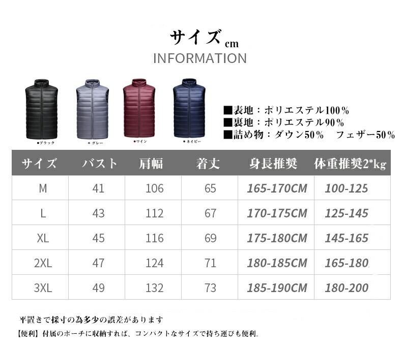 冬ギフト ダウンベスト 紳士 メンズベ トップス ベスト ジレ 豊富な品揃え ワイン ネイビー ブラック グレー M L XL 2XL 3XL