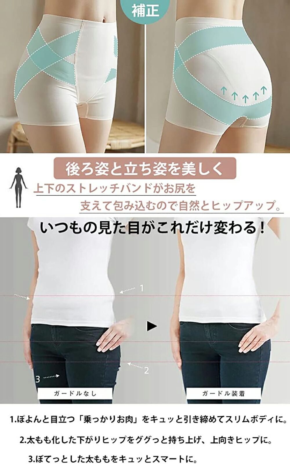ショーツ レディース 補正下着 ガード レディース インナー 下着 補正下着 ガードルショーツ 続々登場 ブラック+ブラック ブラック+スキンカラー スキンカラー+スキンカラー M L XL