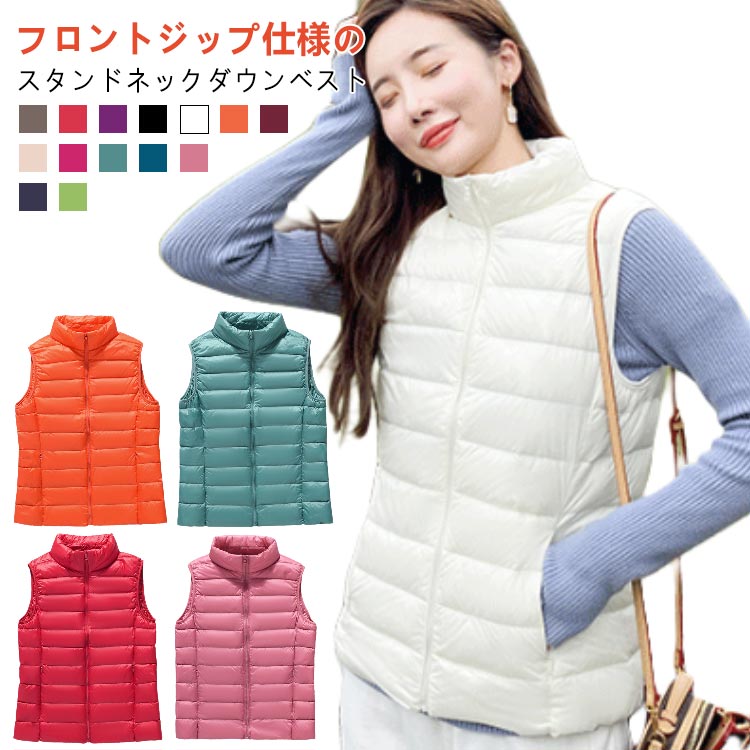 ライトダウン インナー ジップアップ トップス ベスト 豊富な品揃え モカ レッド パープル ブラック ホワイト オレンジ ワインレッド ピンク 濃いピンク グリーン ブルー ライトピンク ネイビー ミントグリーン S M L XL 2XL 3XL