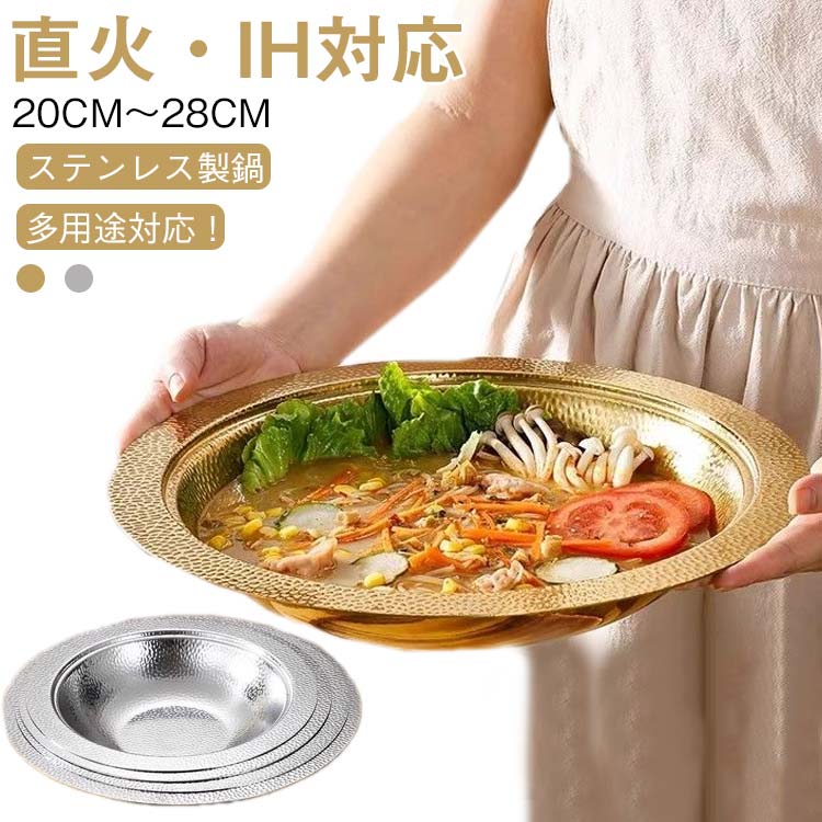 しゃぶしゃぶ鍋 ステンレス 鍋 しゃぶ シルバー ゴールド 20cm 22cm 24cm 26cm 28cm